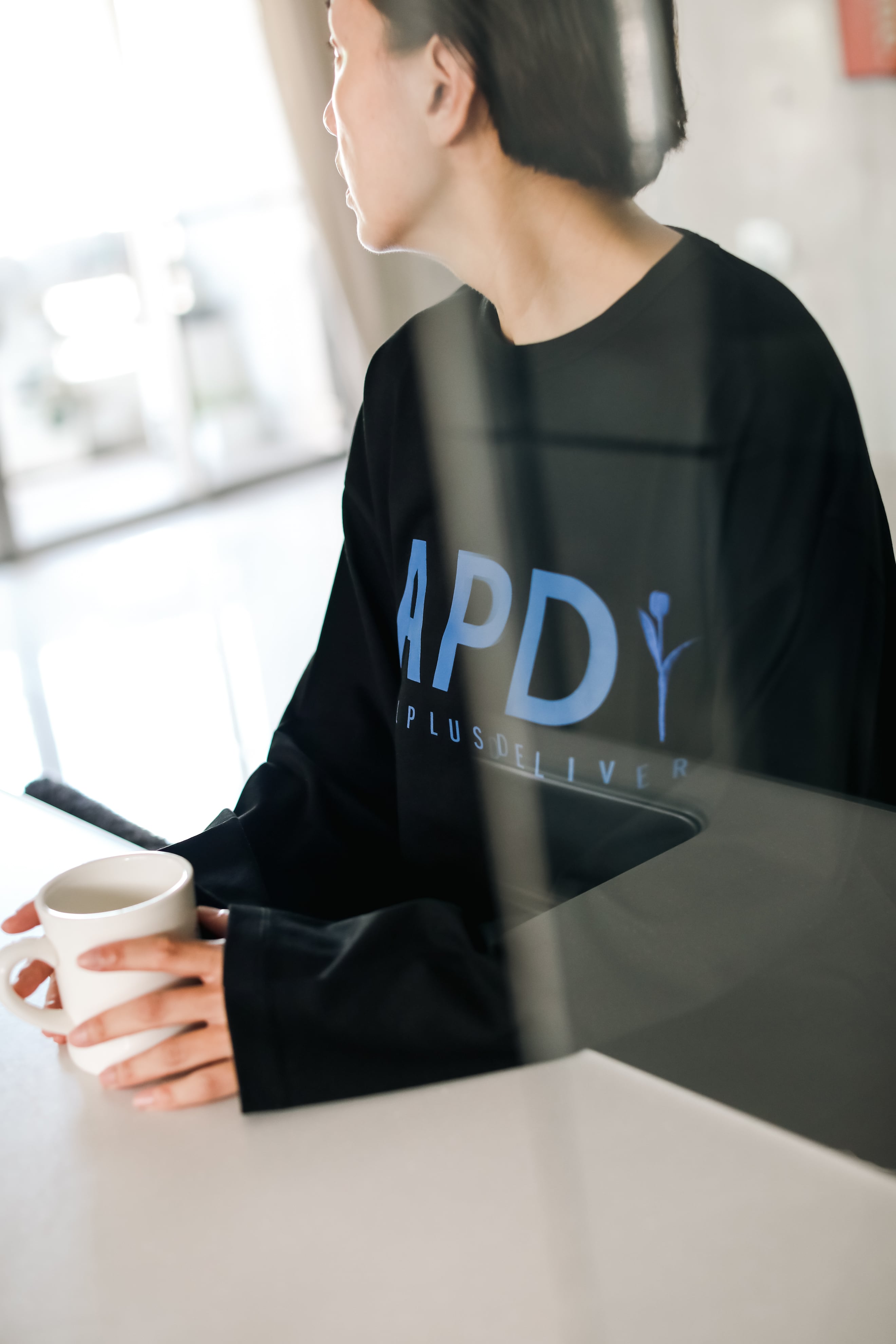 APDロゴをプリントし、チューリップを刺繍で落とし込みました。