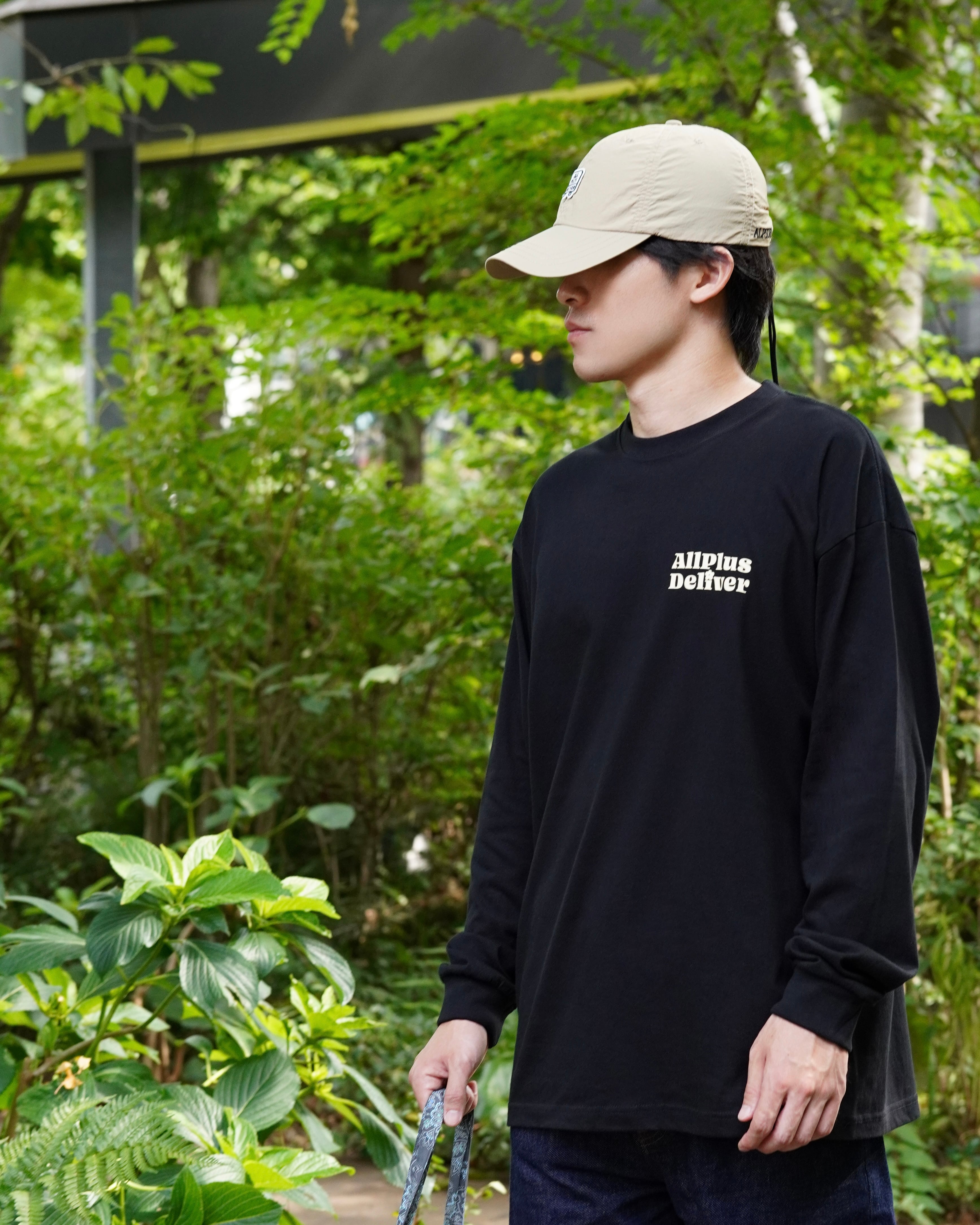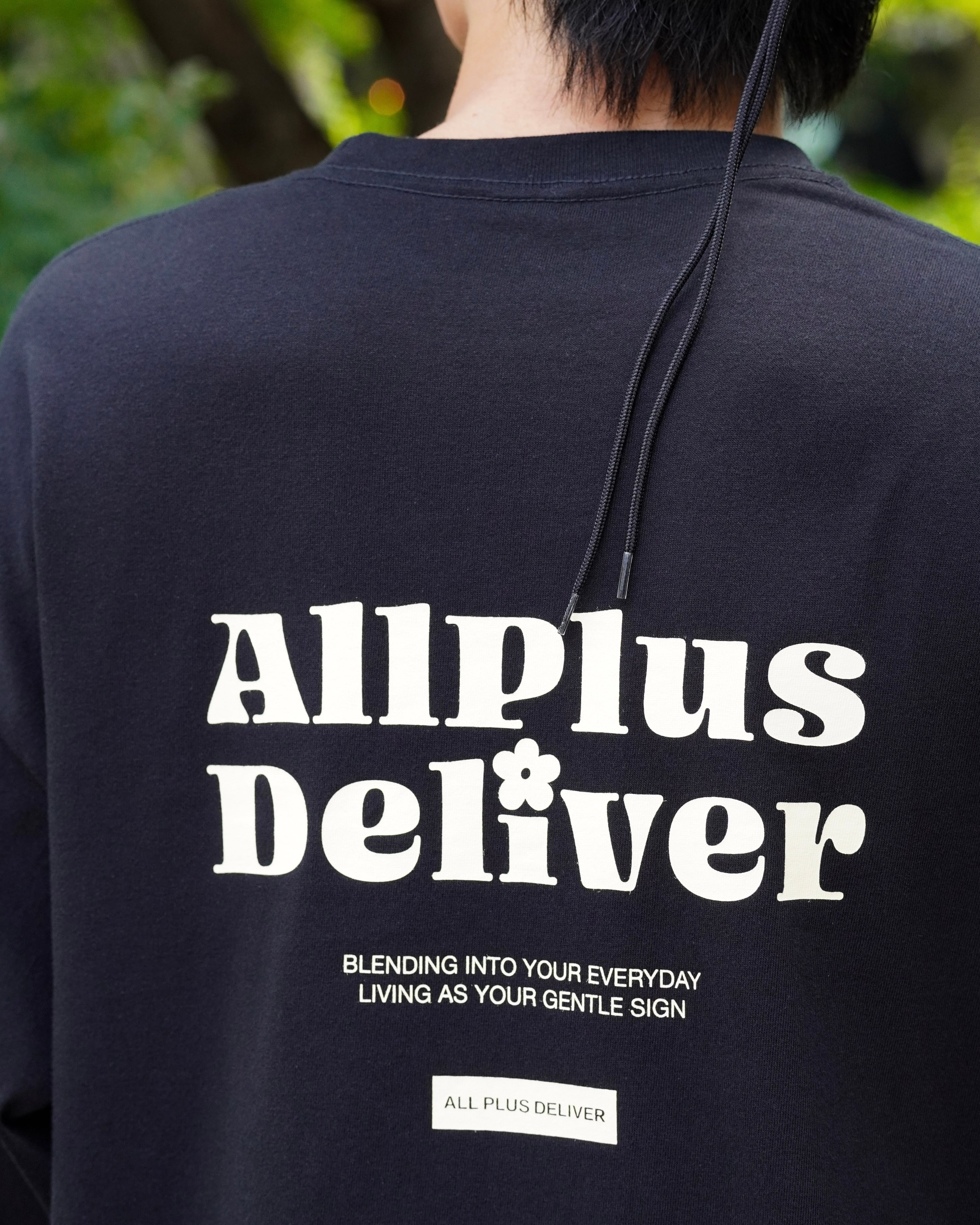 背面に大きく描かれたグラフィックは、日常の中でそっと寄り添う“やさしい目印”として存在感を放ち、フロントのワンポイントロゴは、シンプルながら確かなアクセントに。