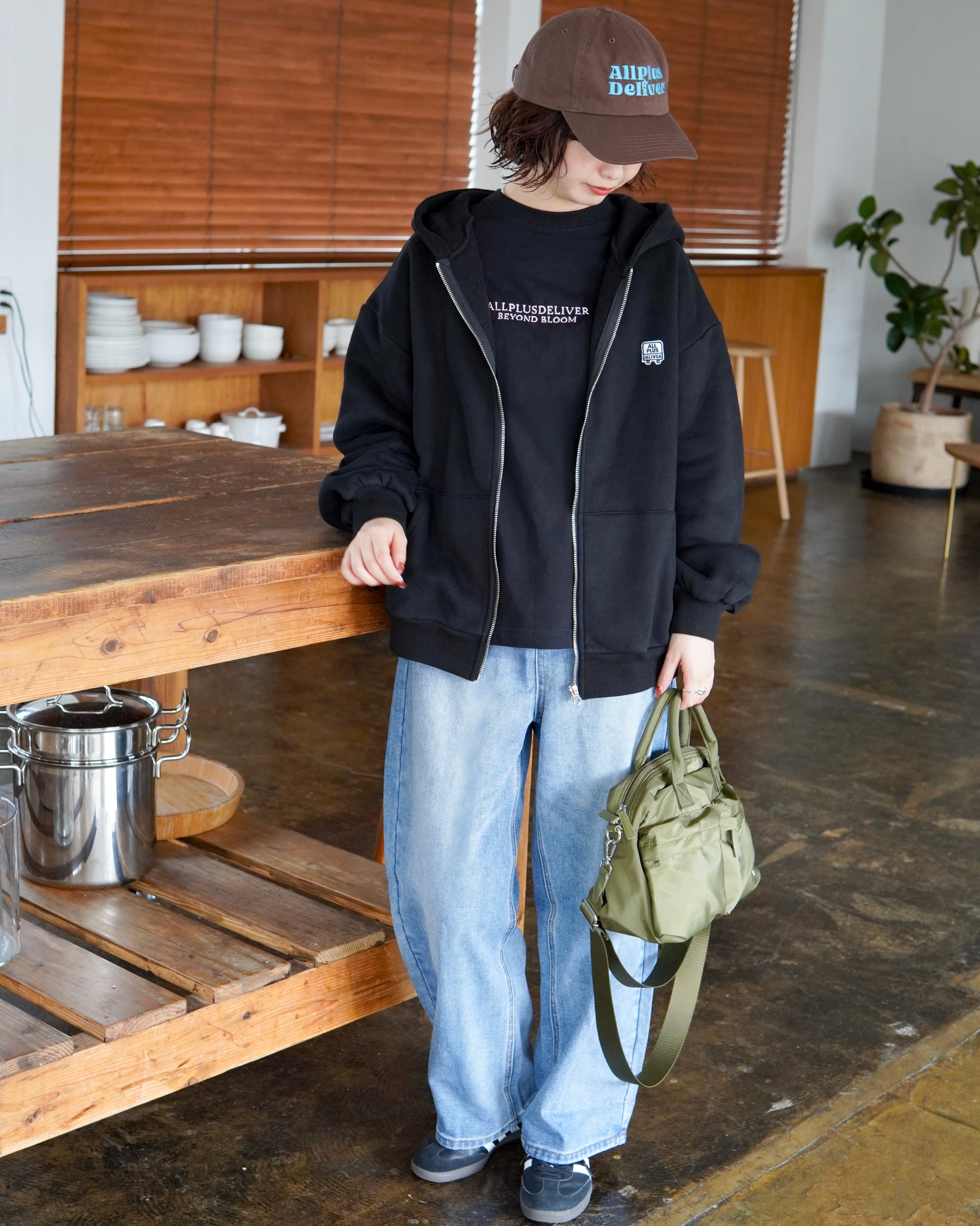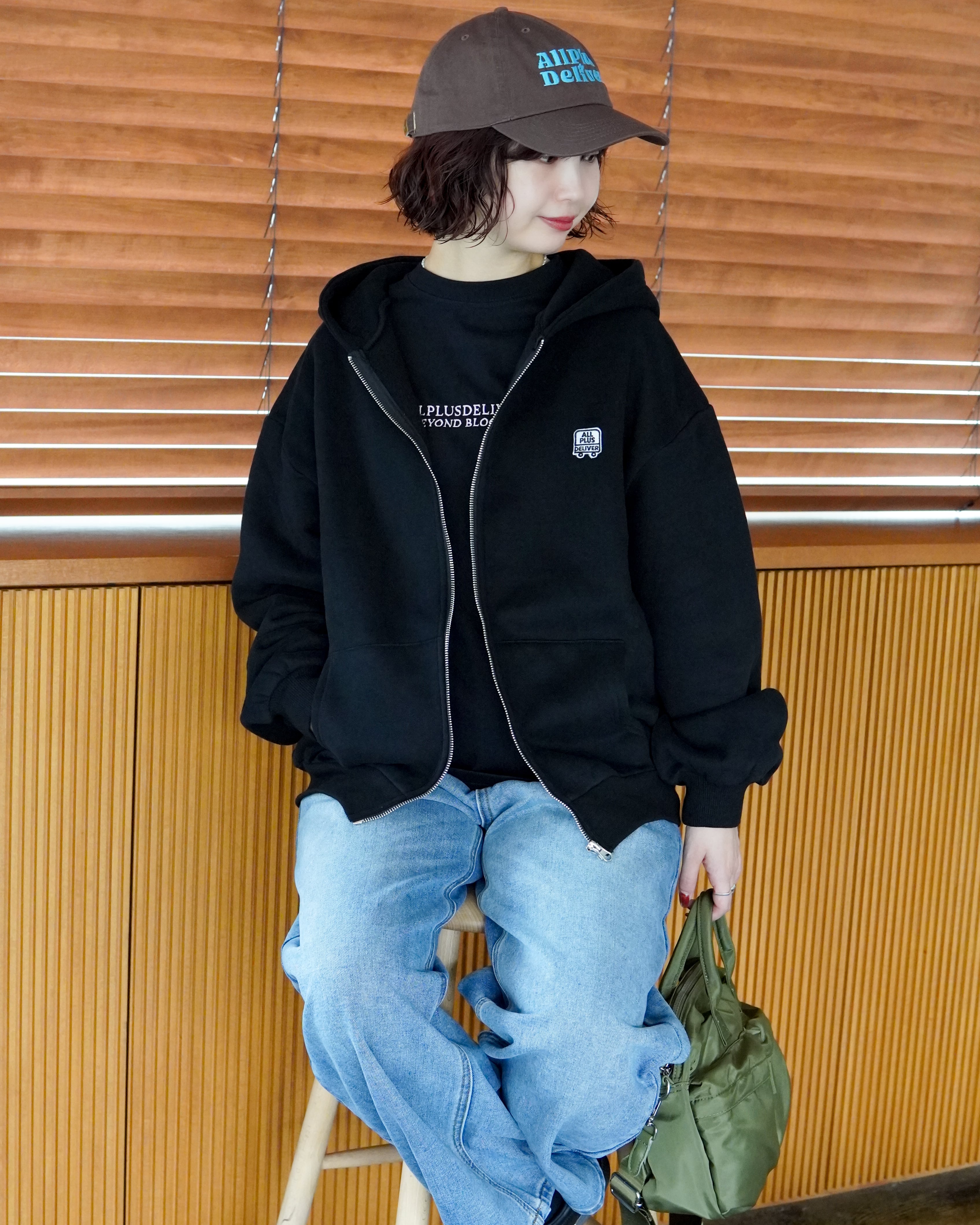ブランドロゴをワッペンで落とし込んだ、ジップフーディーです。