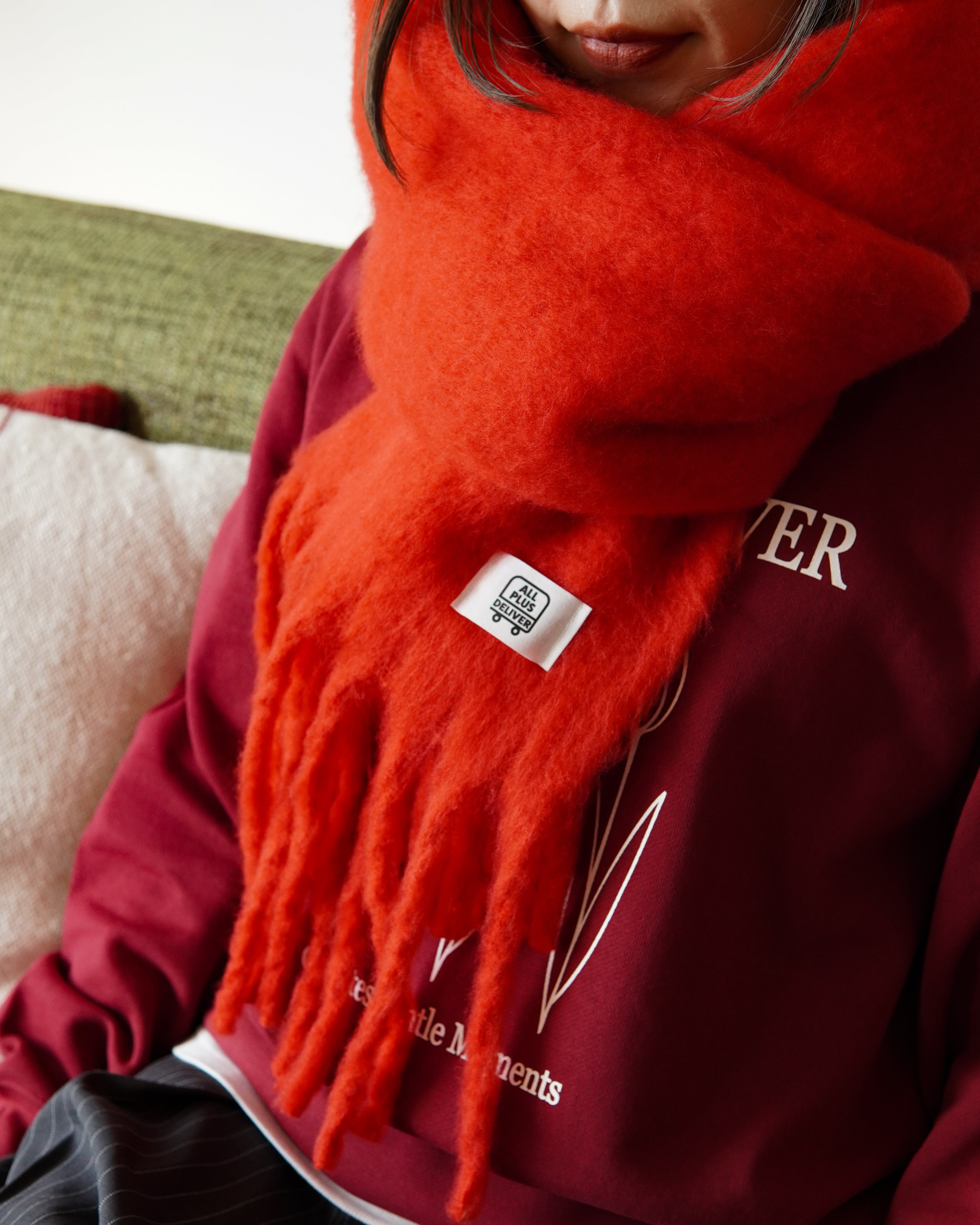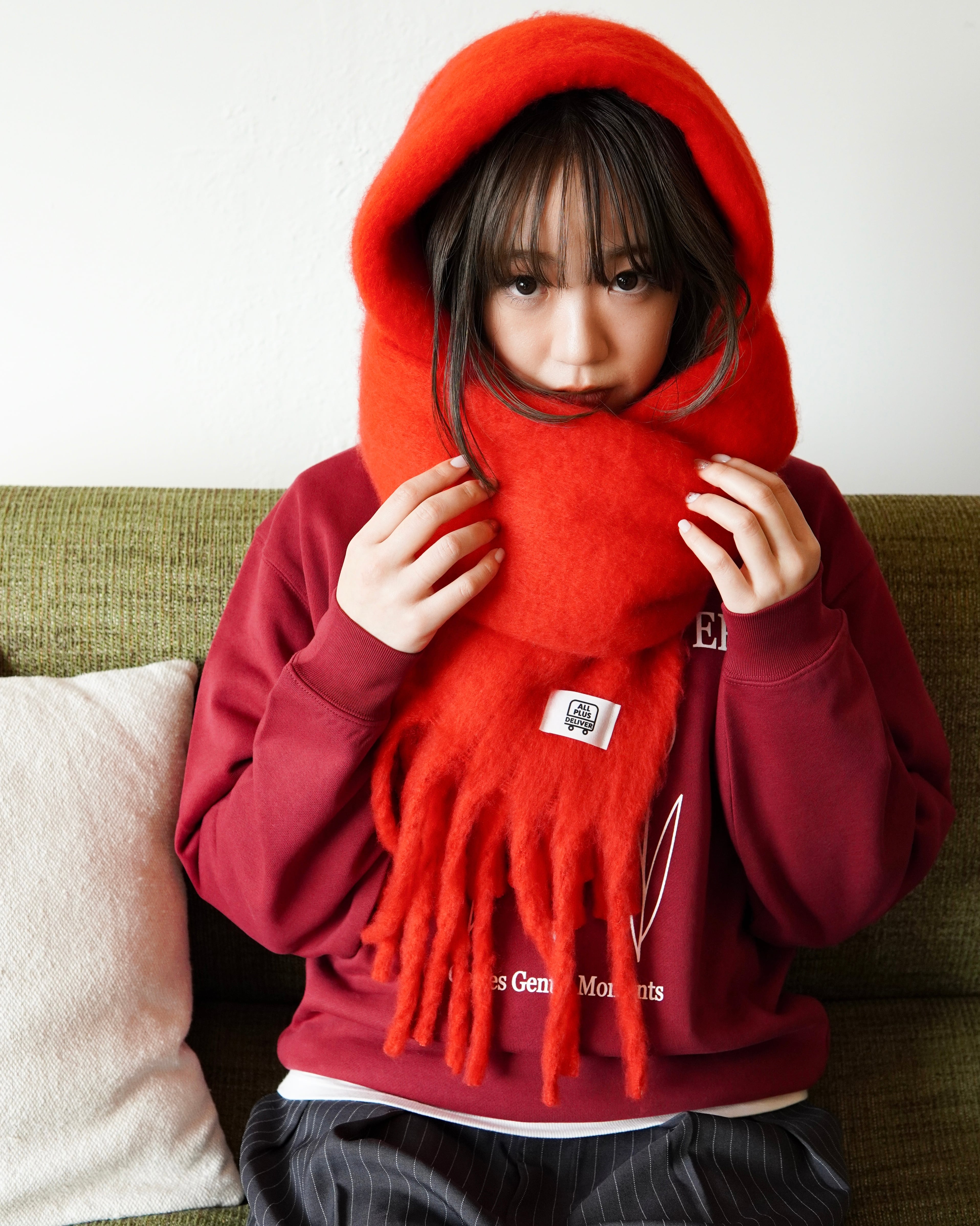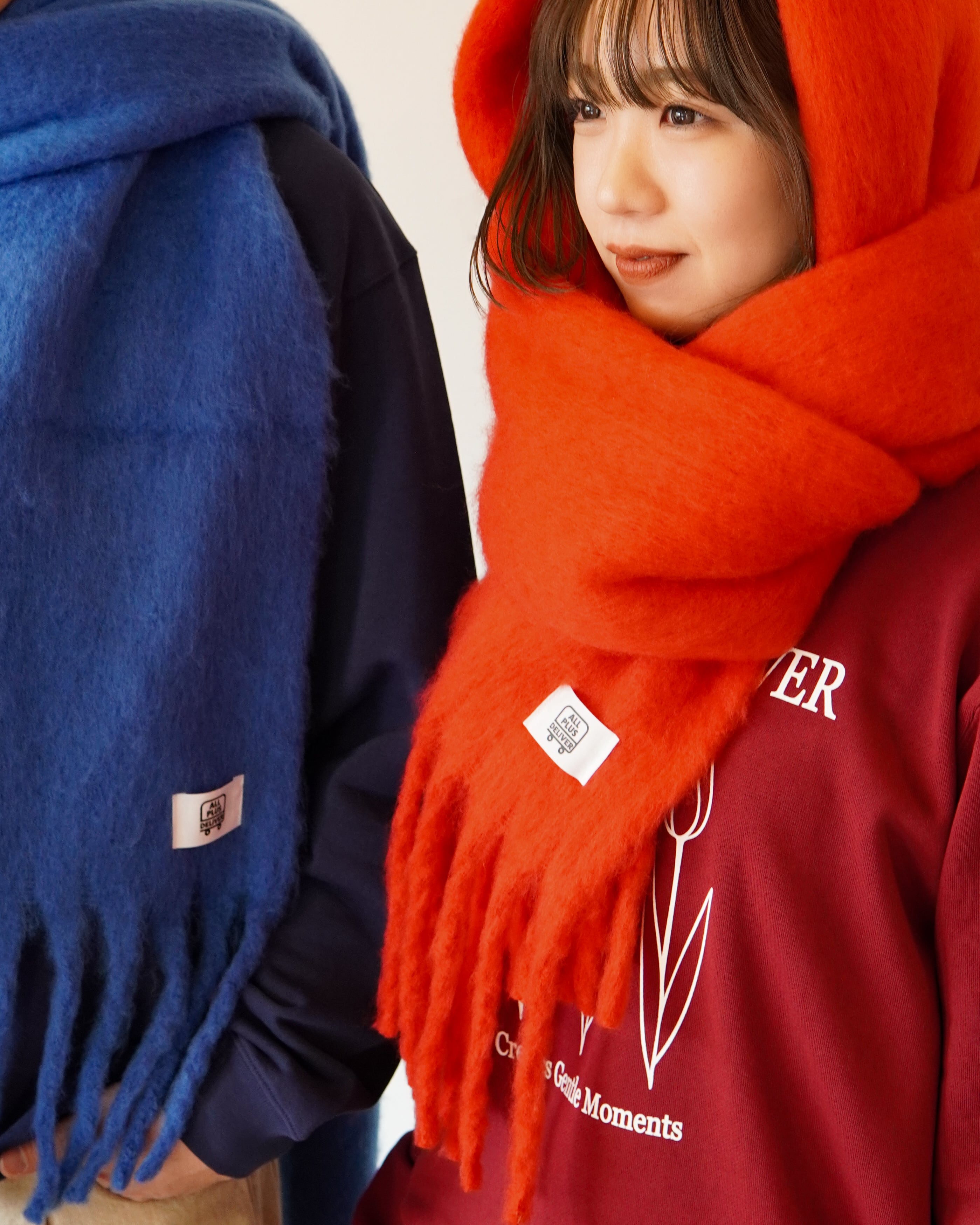 ブランドロゴをネームで落とし込んだ、ロングマフラー。
