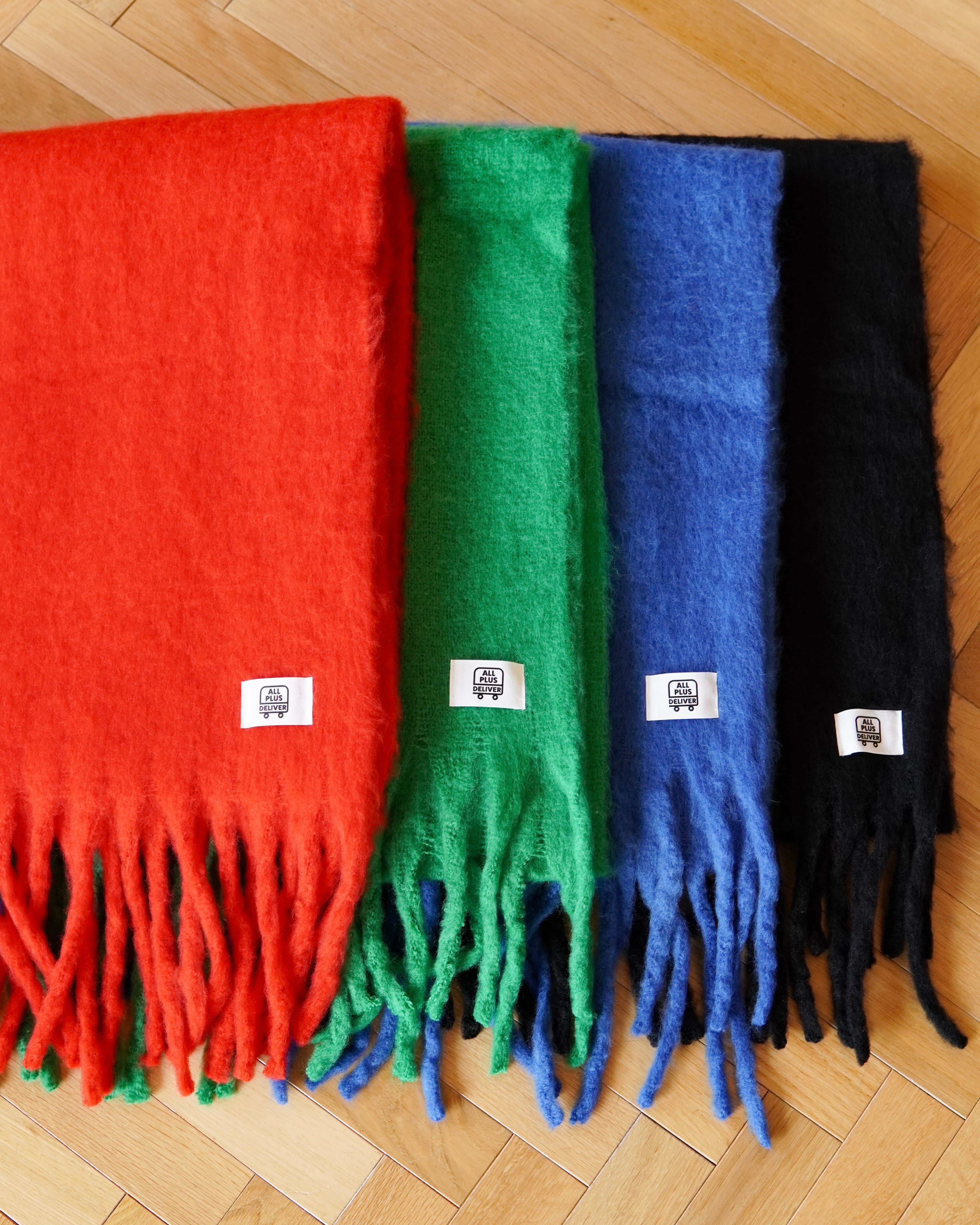 ブランドロゴをネームで落とし込んだ、ロングマフラー。