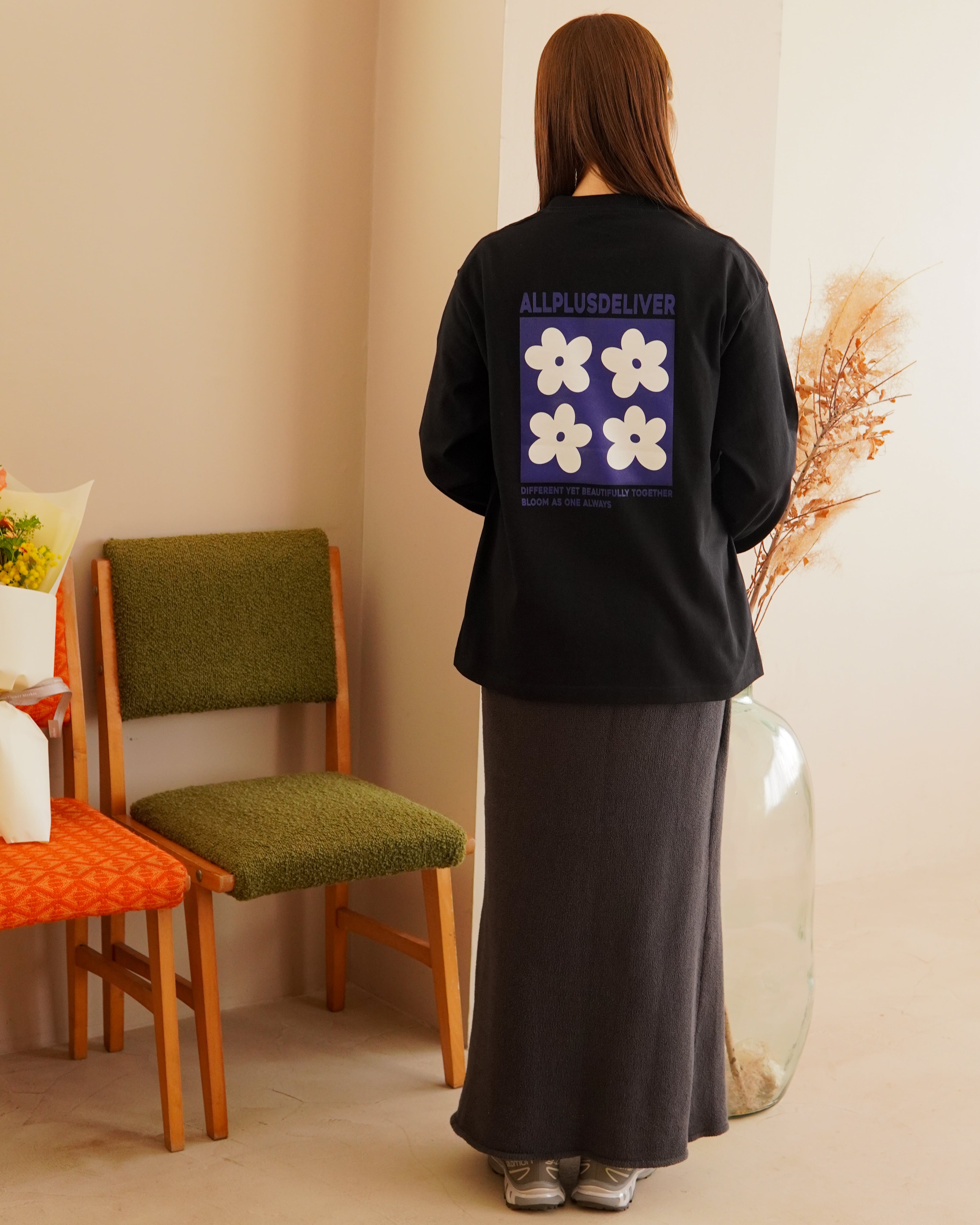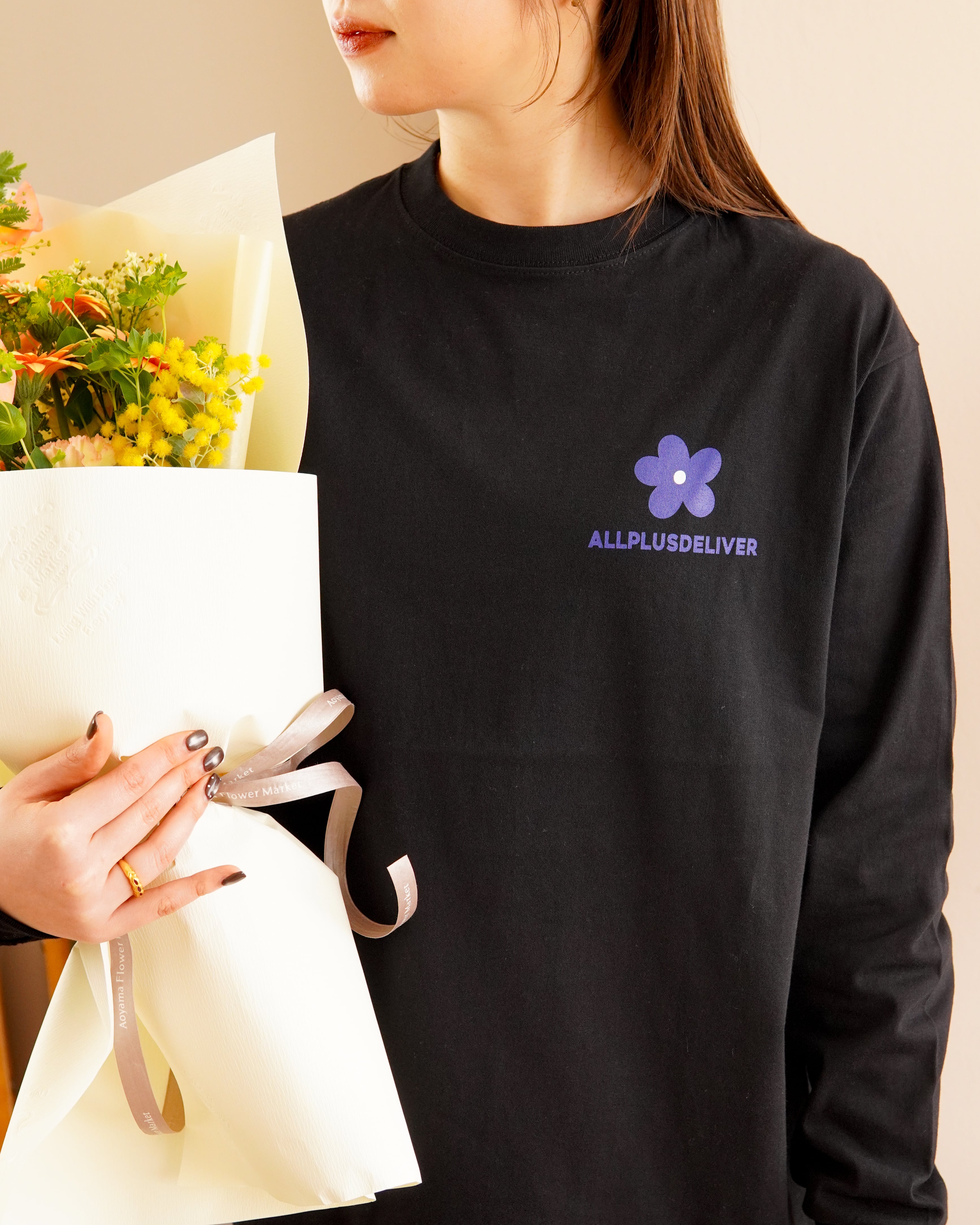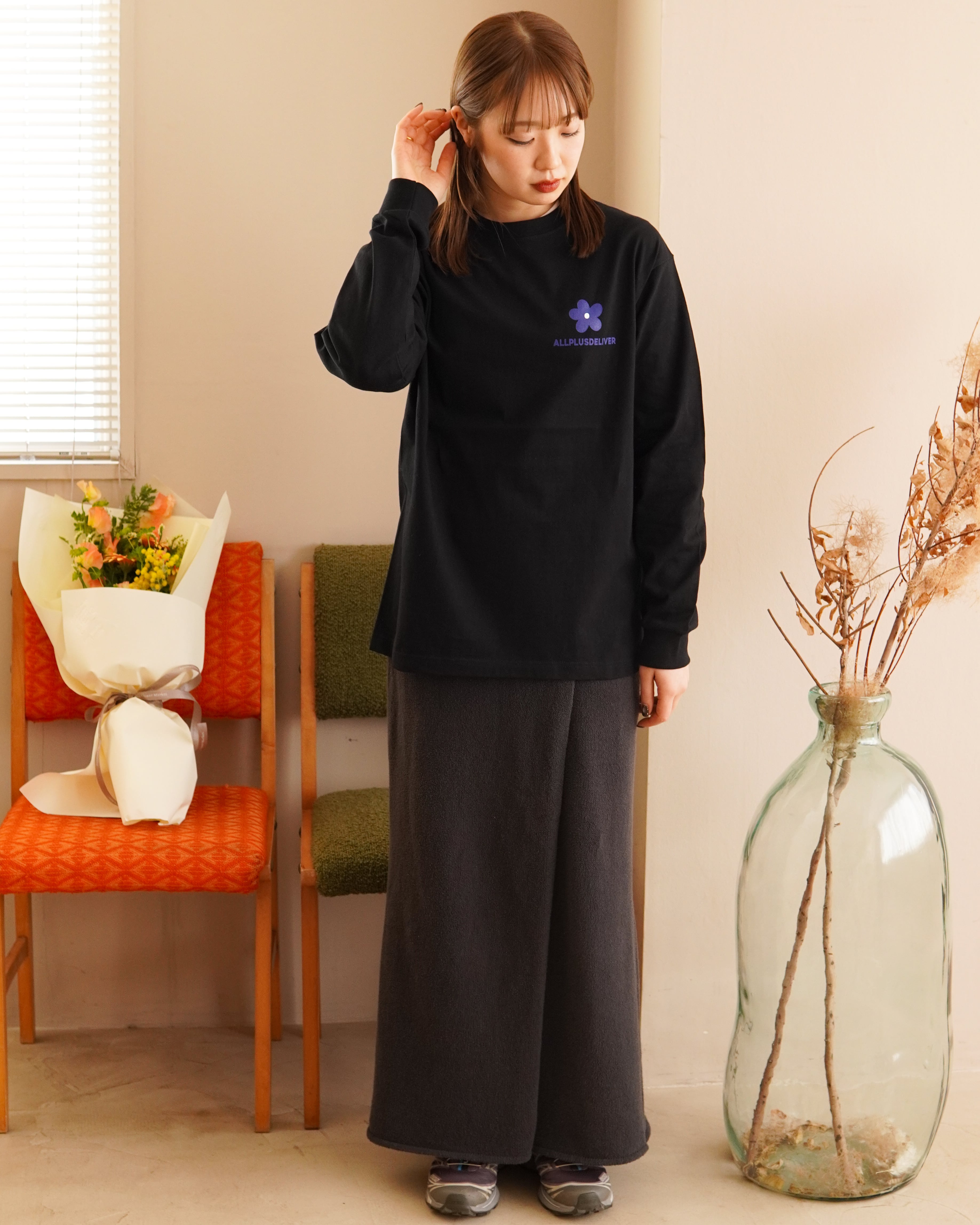 ALPSDR FLOWER LOGO LS TEE / BLACK × BLUE