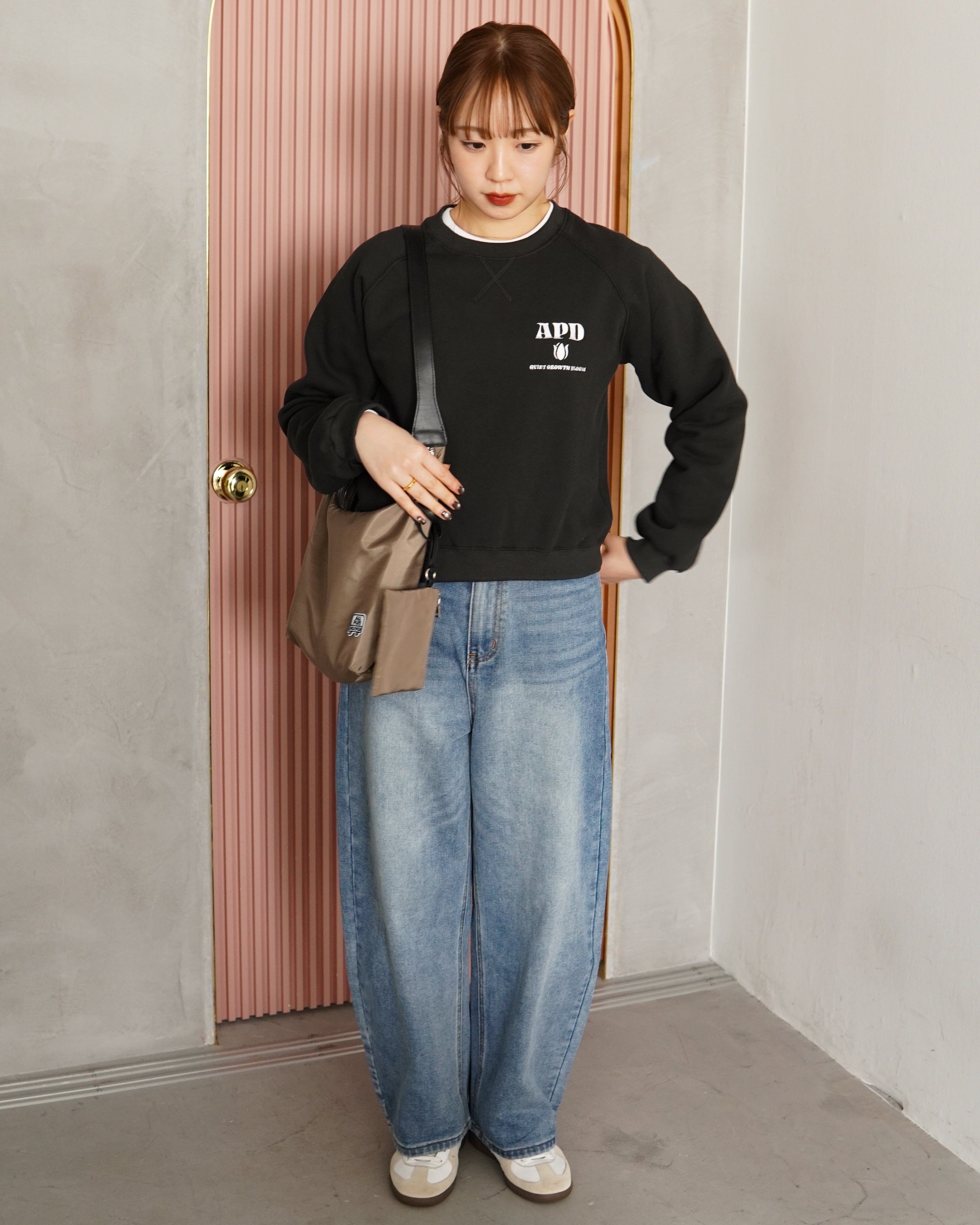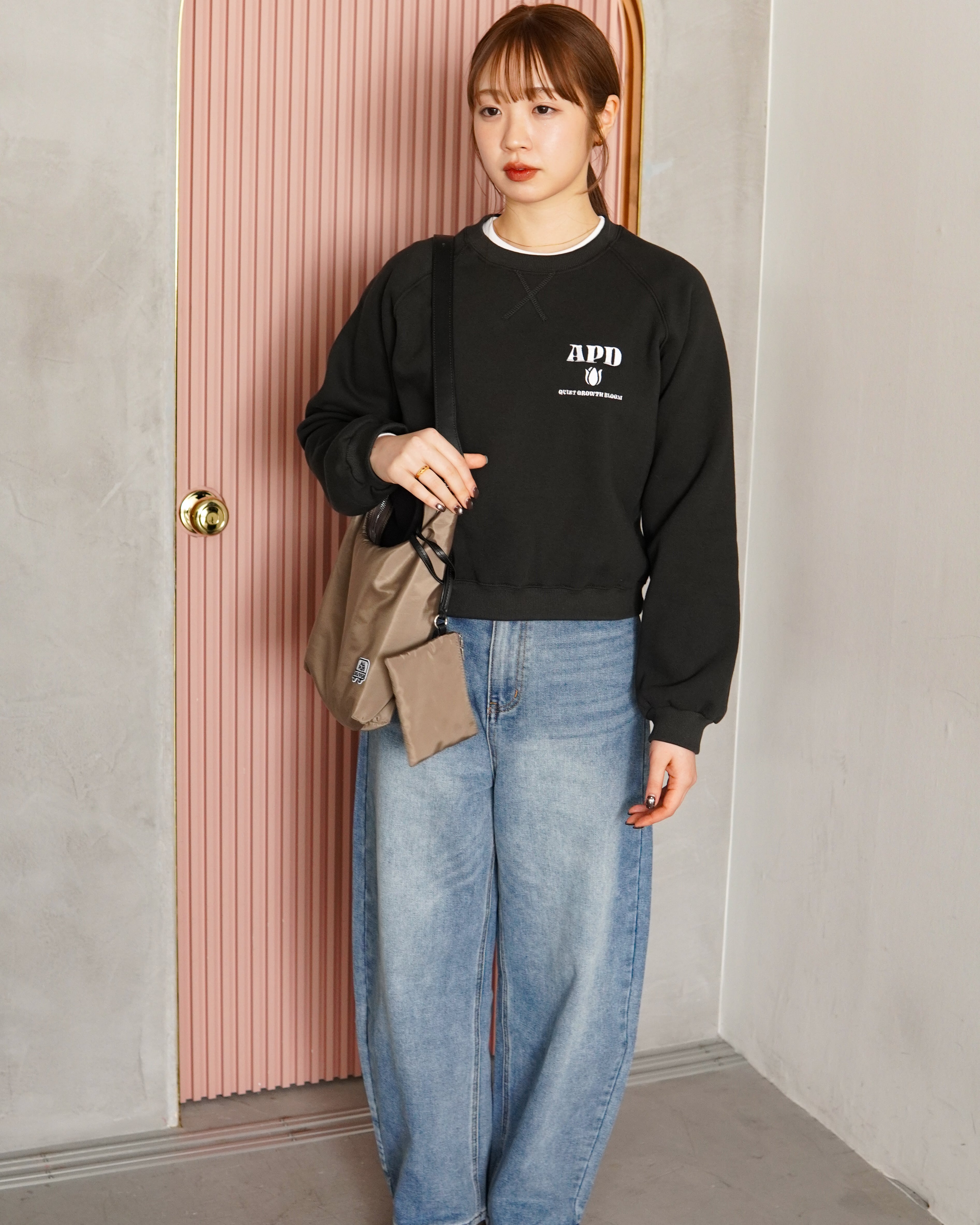 程よく厚みのあるスウェット生地に、ラグランスリーブ仕様でリラックス感のある着心地。