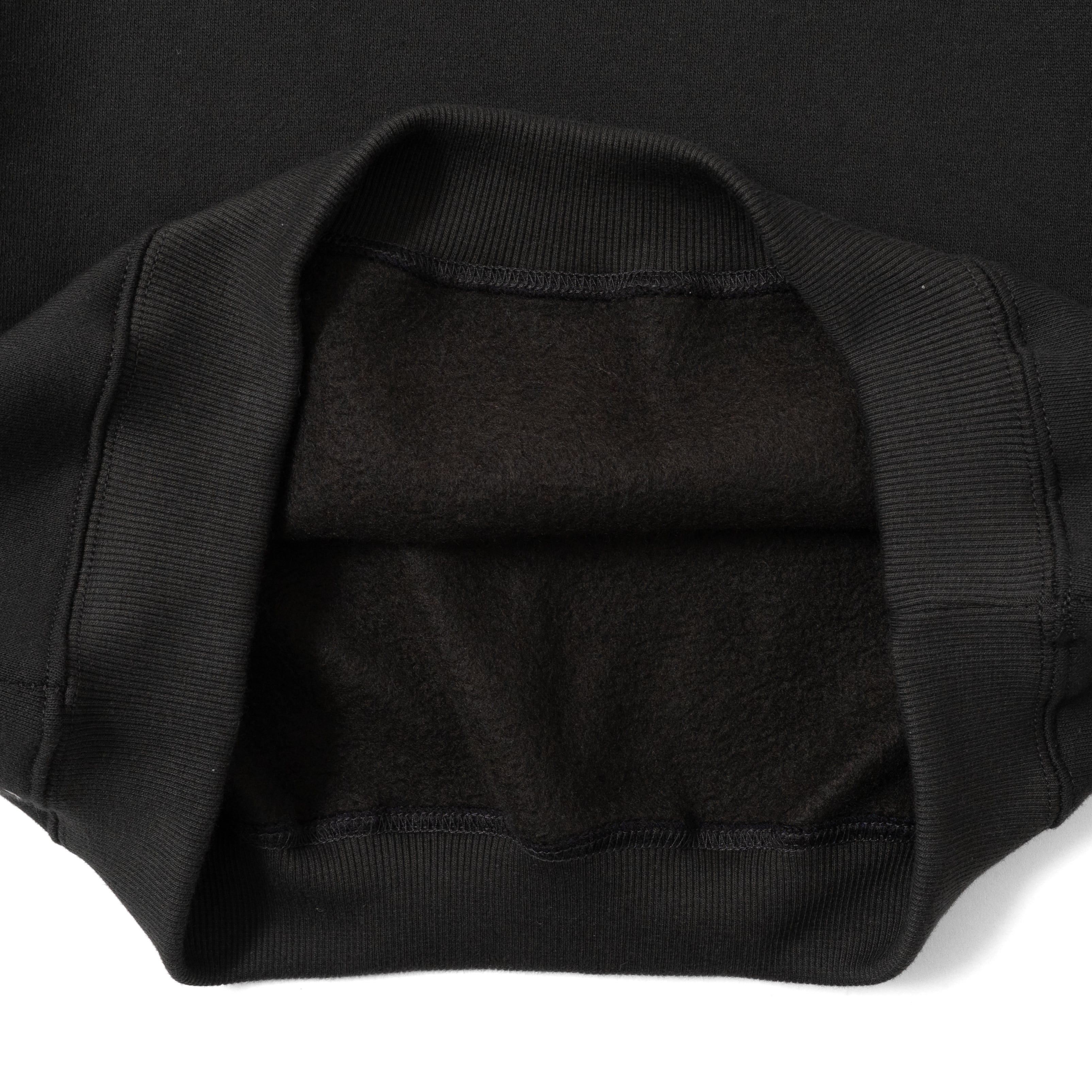 コットン100%でハリと柔らかさのバランスが良く、デイリーに着やすいミドルウェイト生地を使用。裏起毛ならではの暖かさと、肌当たりの優しい着心地がポイントです。