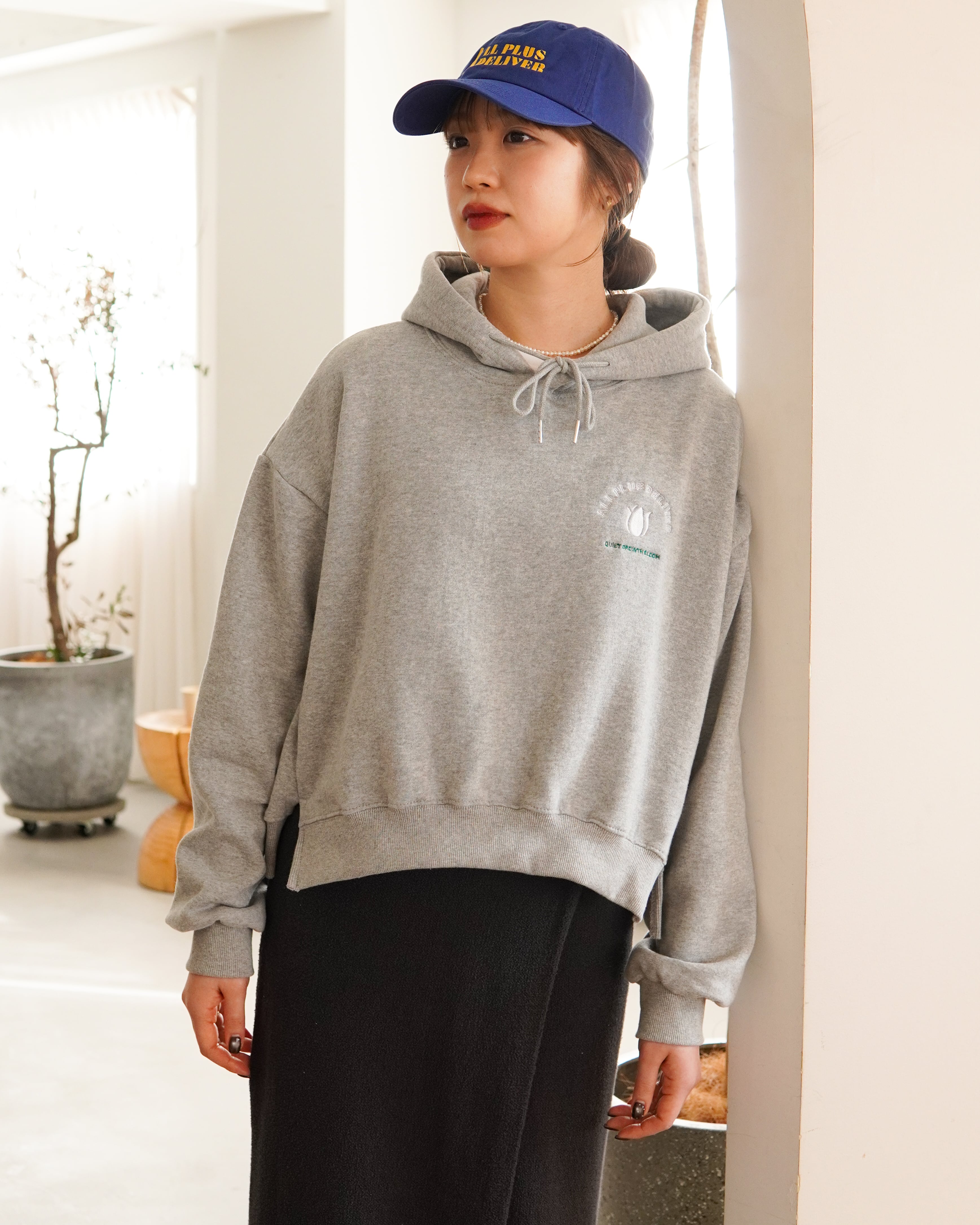 ALPSDR QB TULIP LOGO CROPPED HOODIE / GRAY