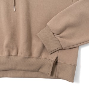 コットン100%でハリと柔らかさのバランスが良く、デイリーに着やすいミドルウェイト生地を使用。裏起毛ならではの暖かさと、肌当たりの優しい着心地がポイントです。