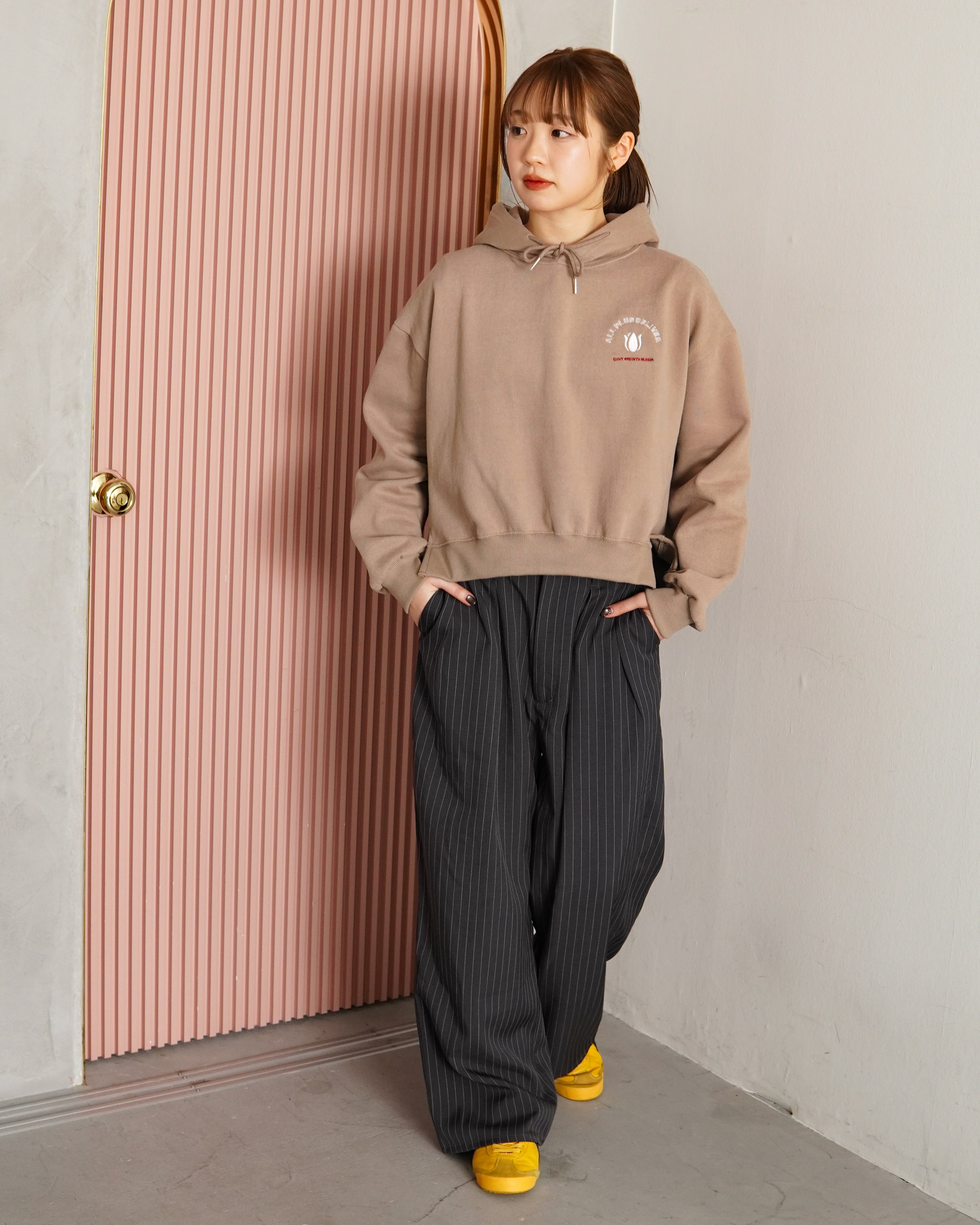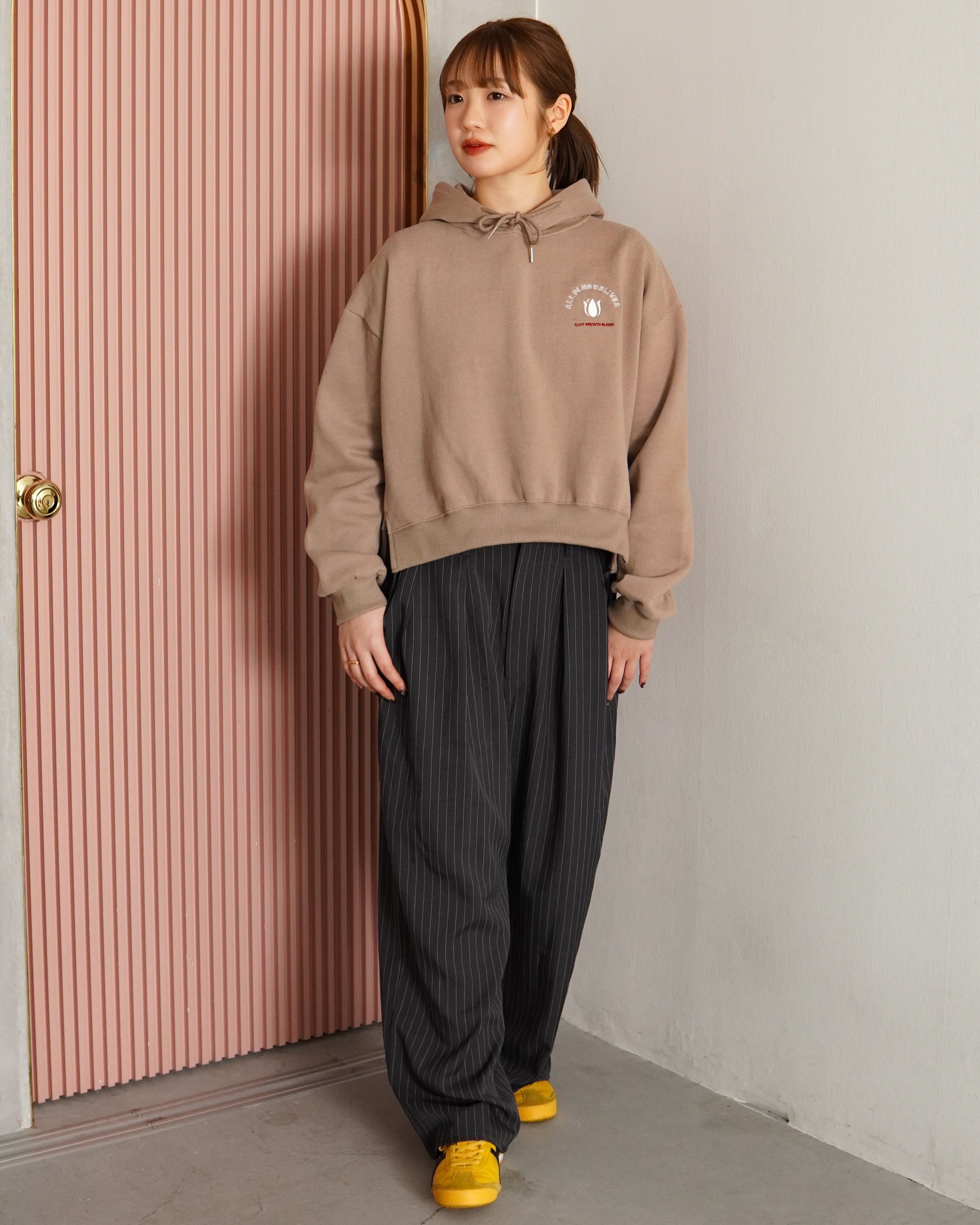 ALPSDR QB TULIP LOGO CROPPED HOODIE / BEIGE