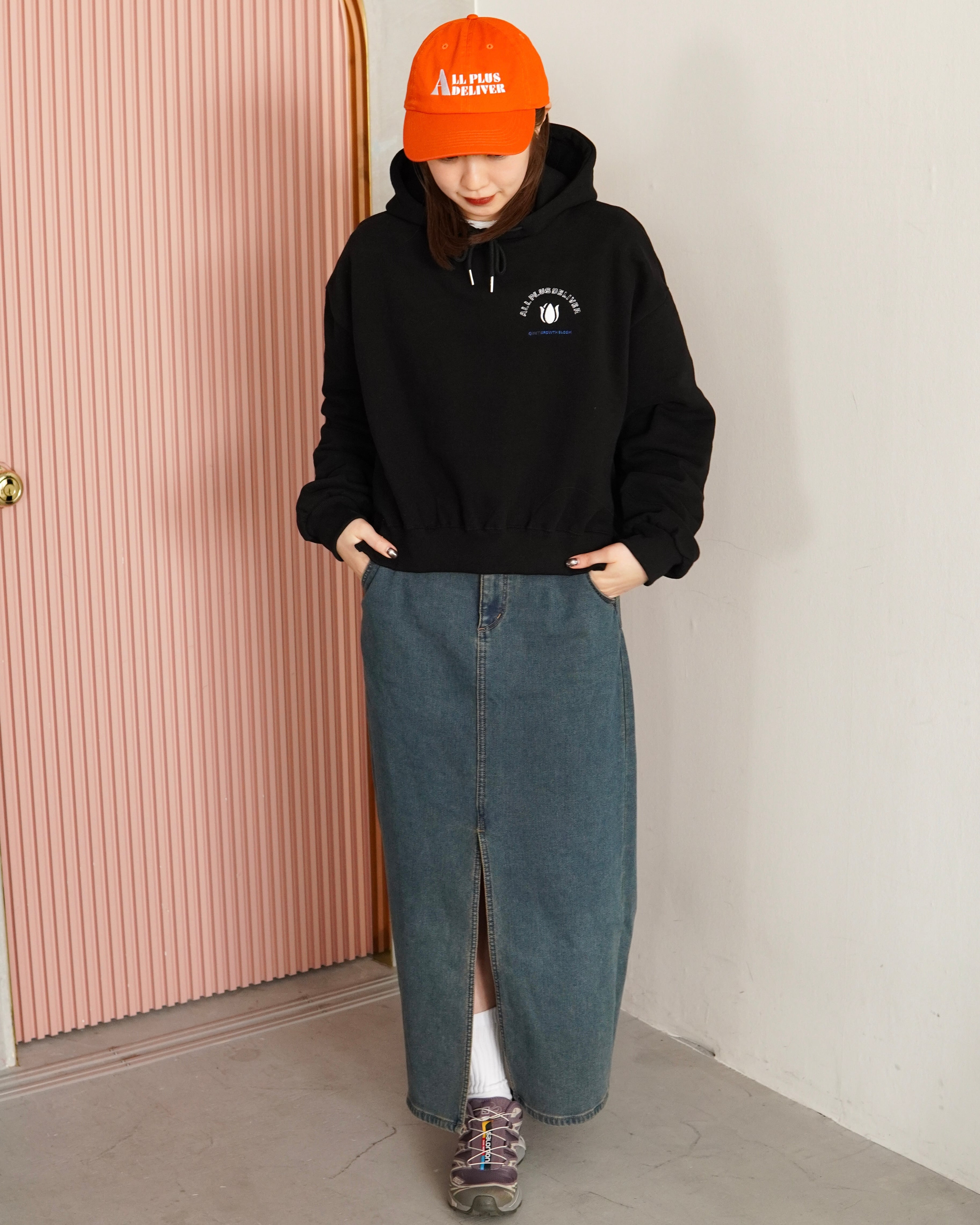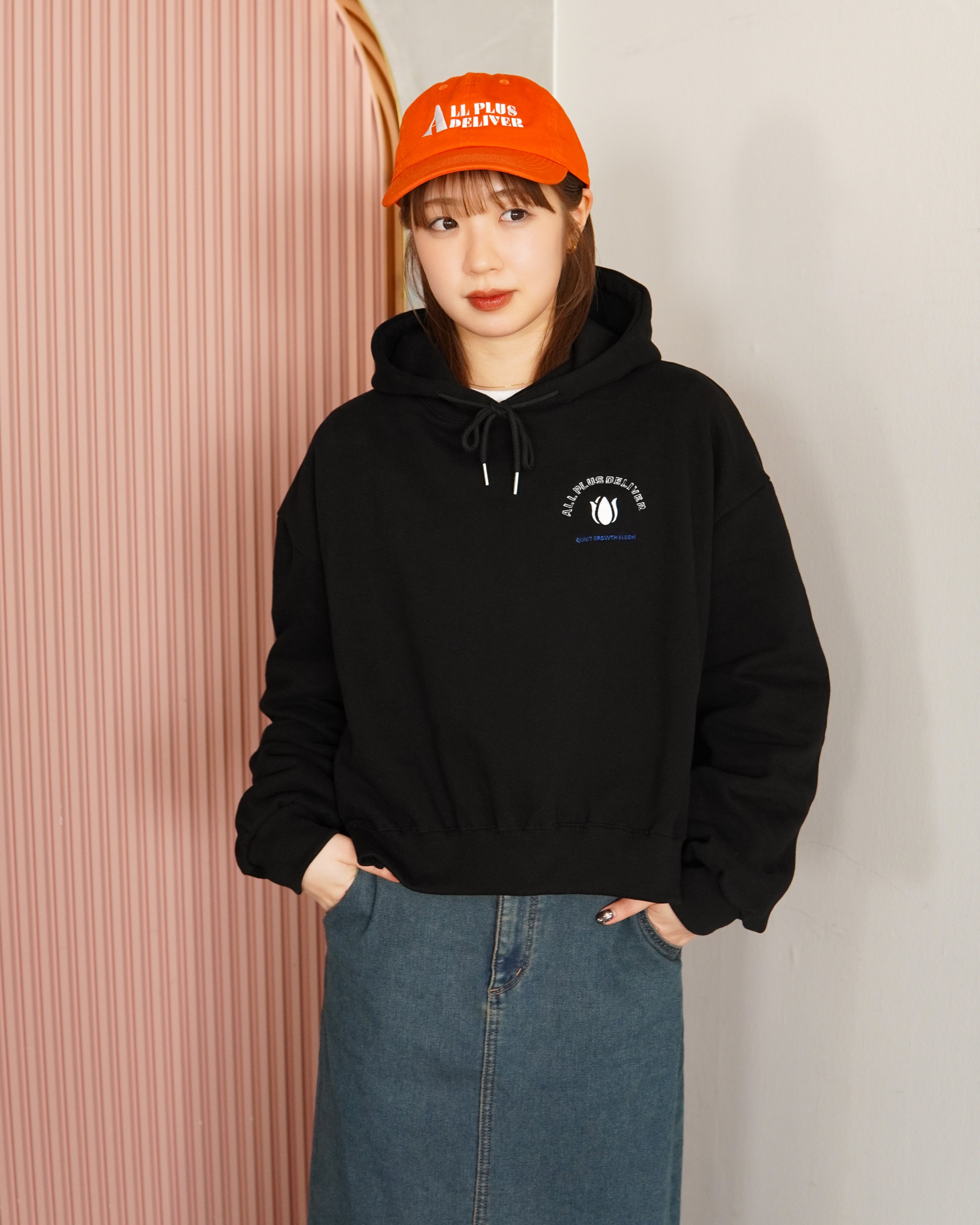 ALPSDR QB TULIP LOGO CROPPED HOODIE / BLACK