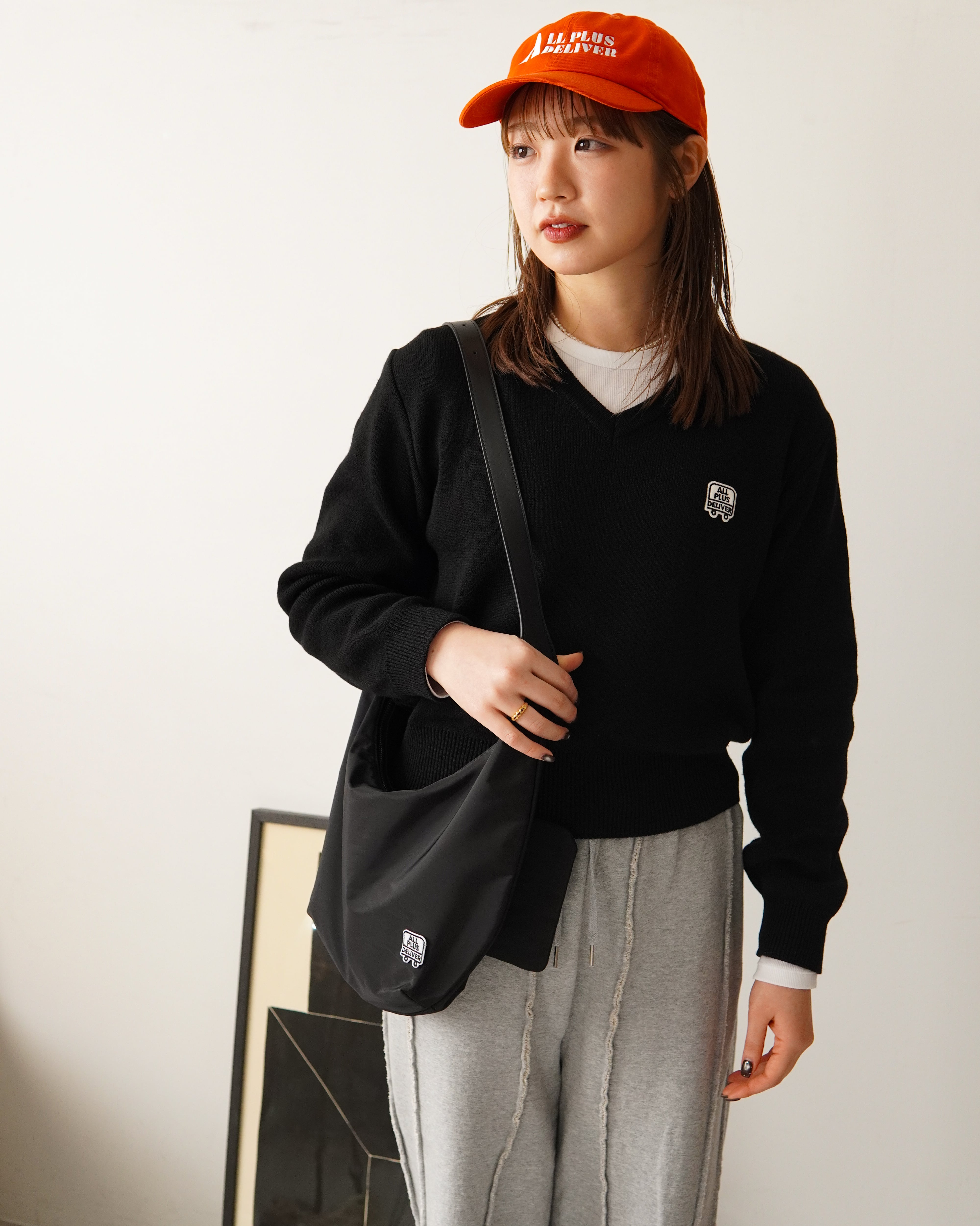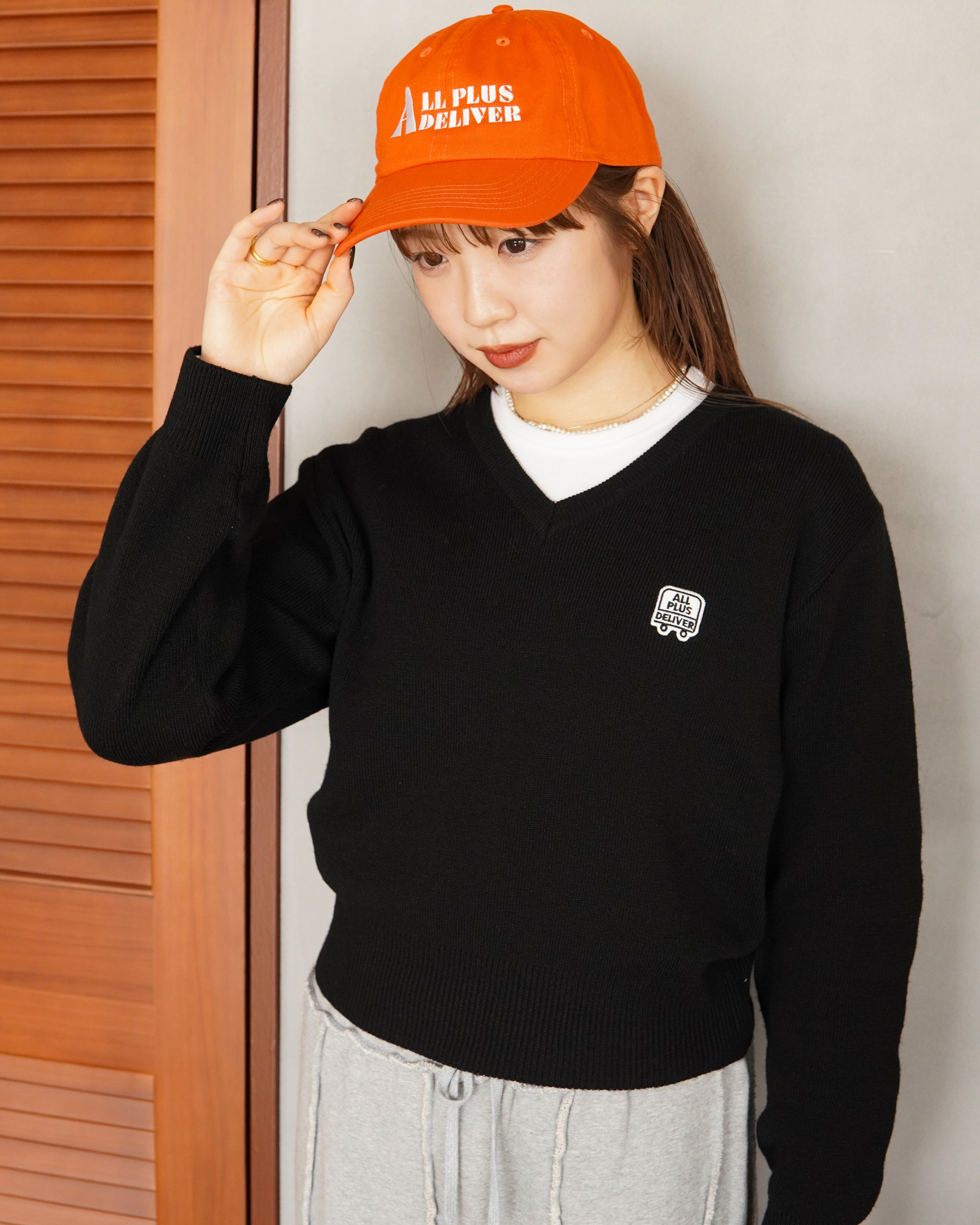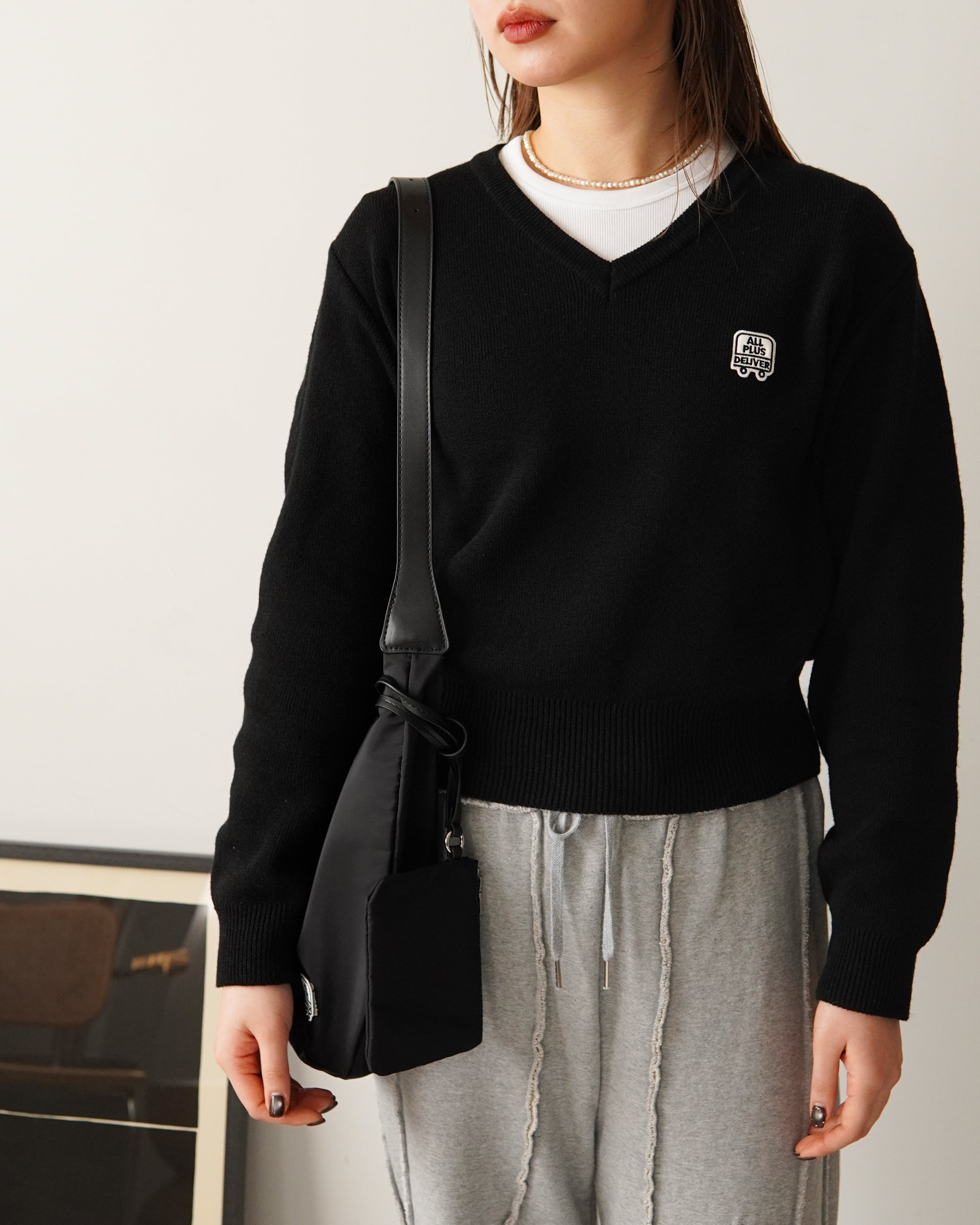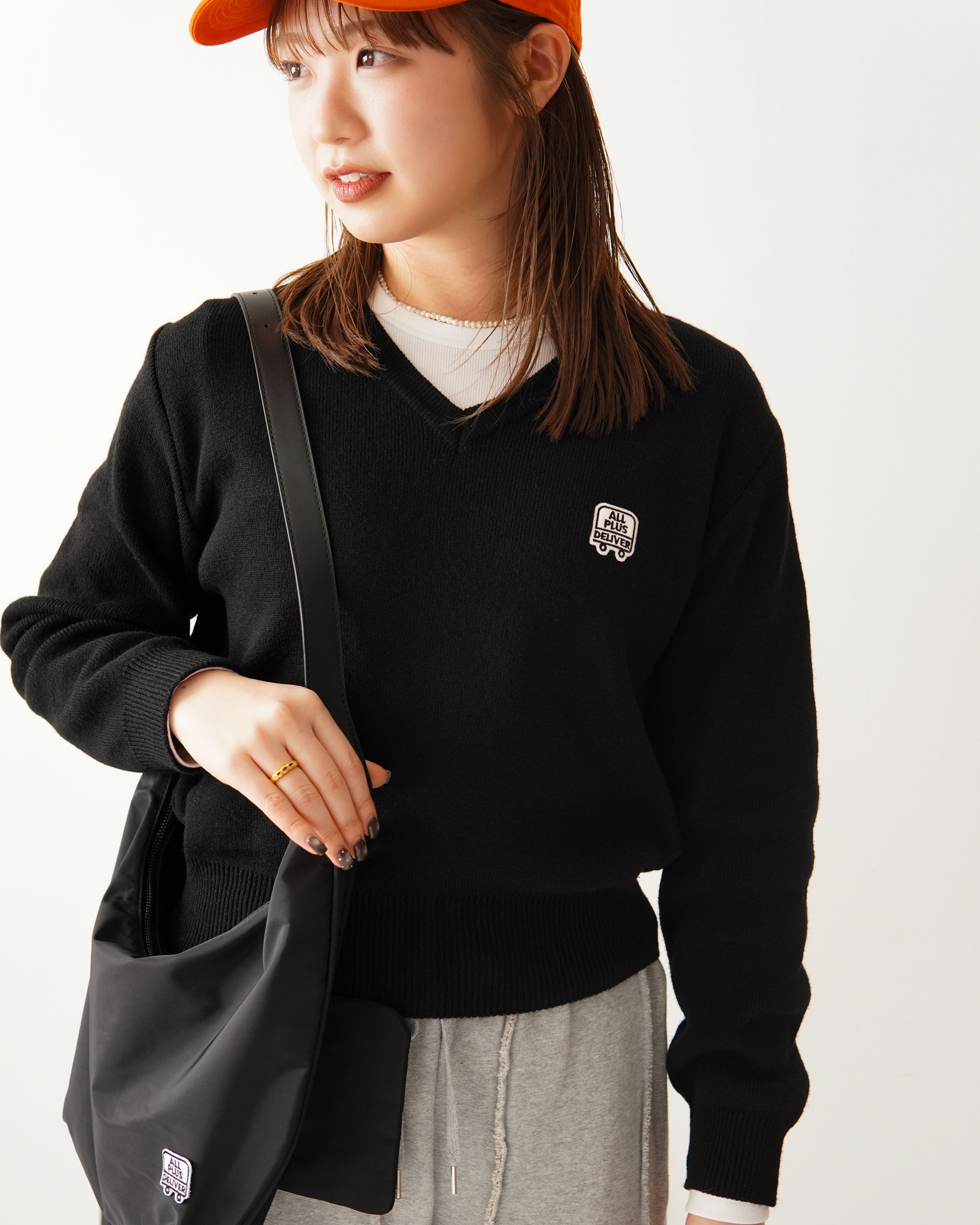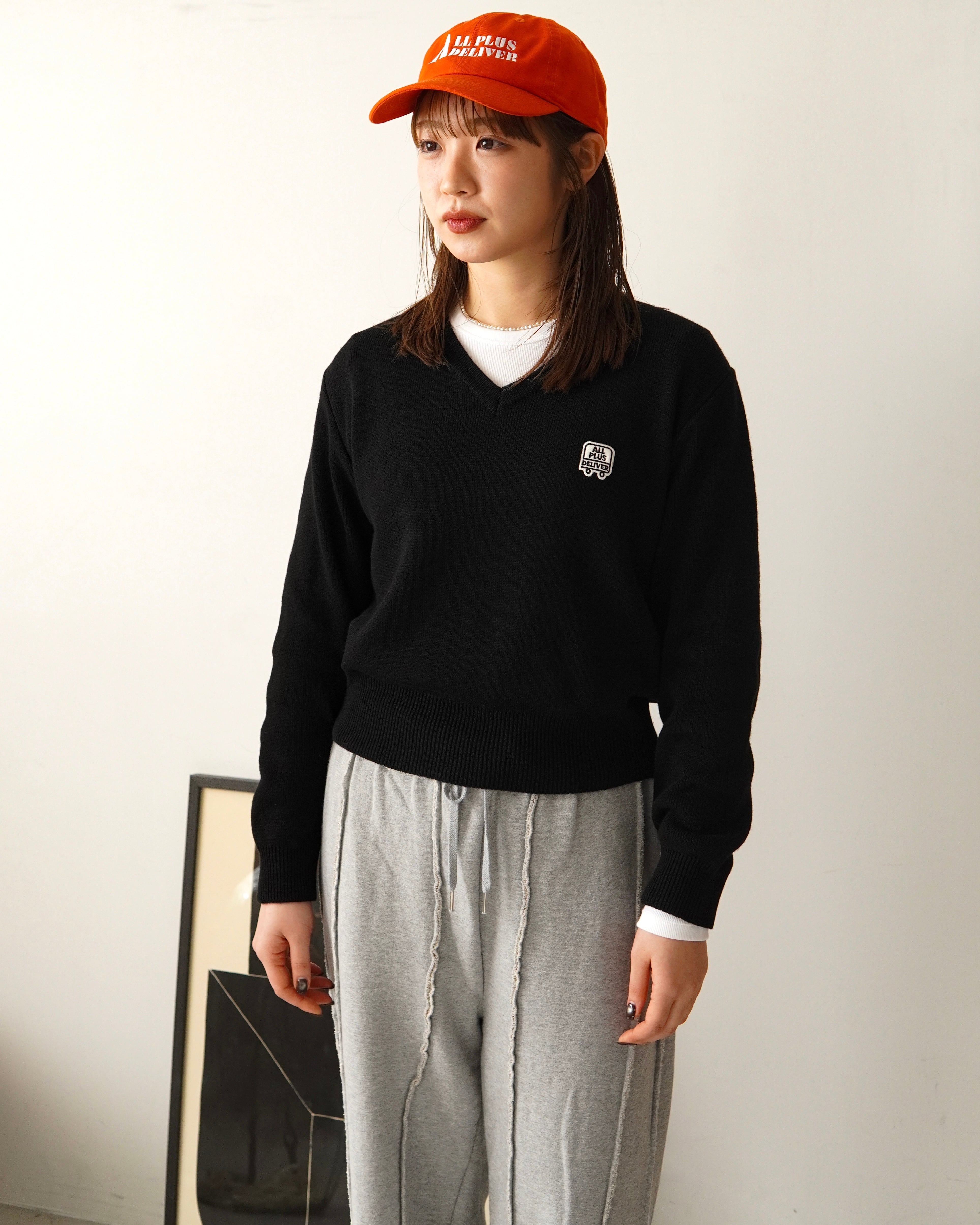 ALPSDR LOGO PATCH V-NECK KNIT / BLACK