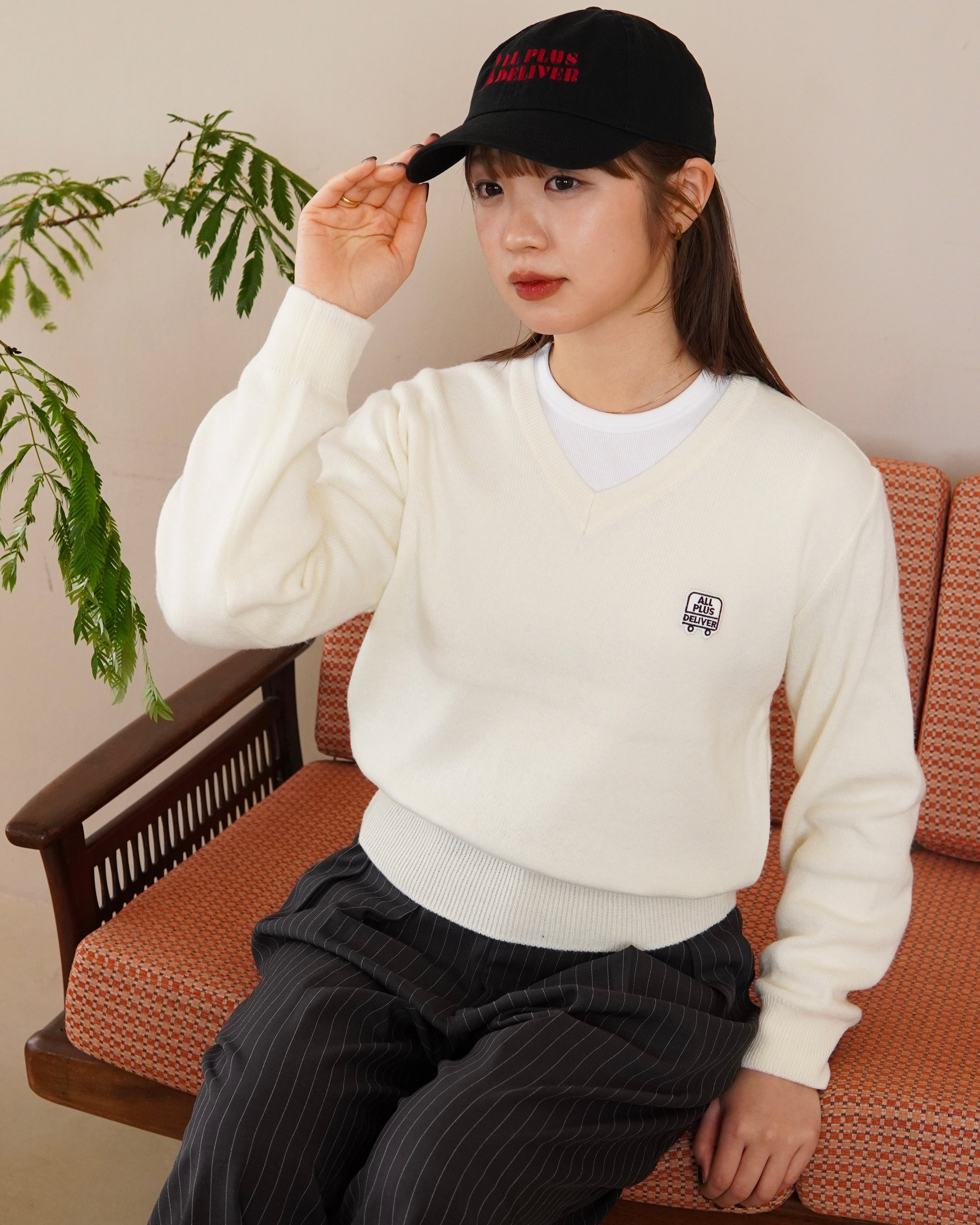 ALPSDR LOGO PATCH V-NECK KNIT / IVORY