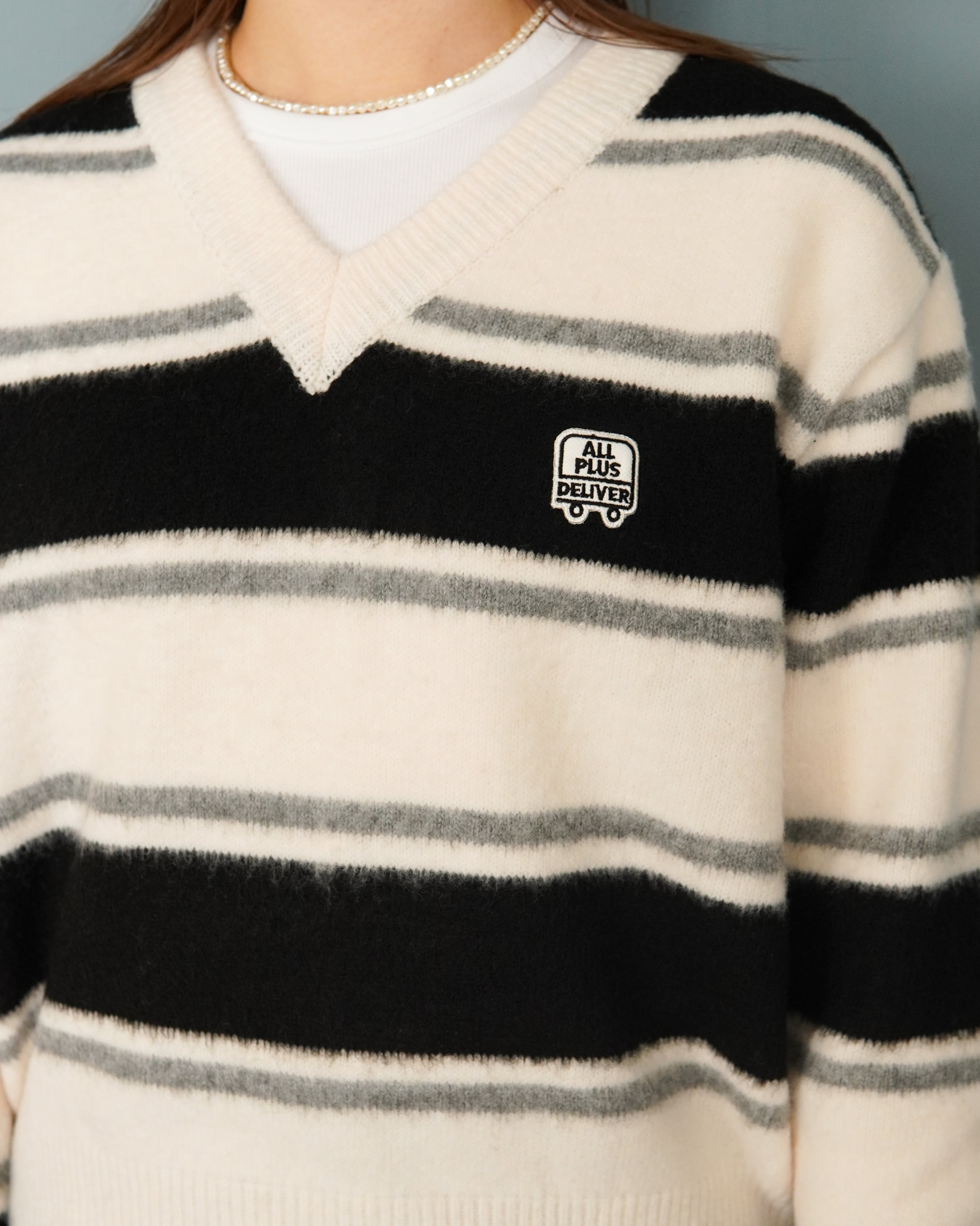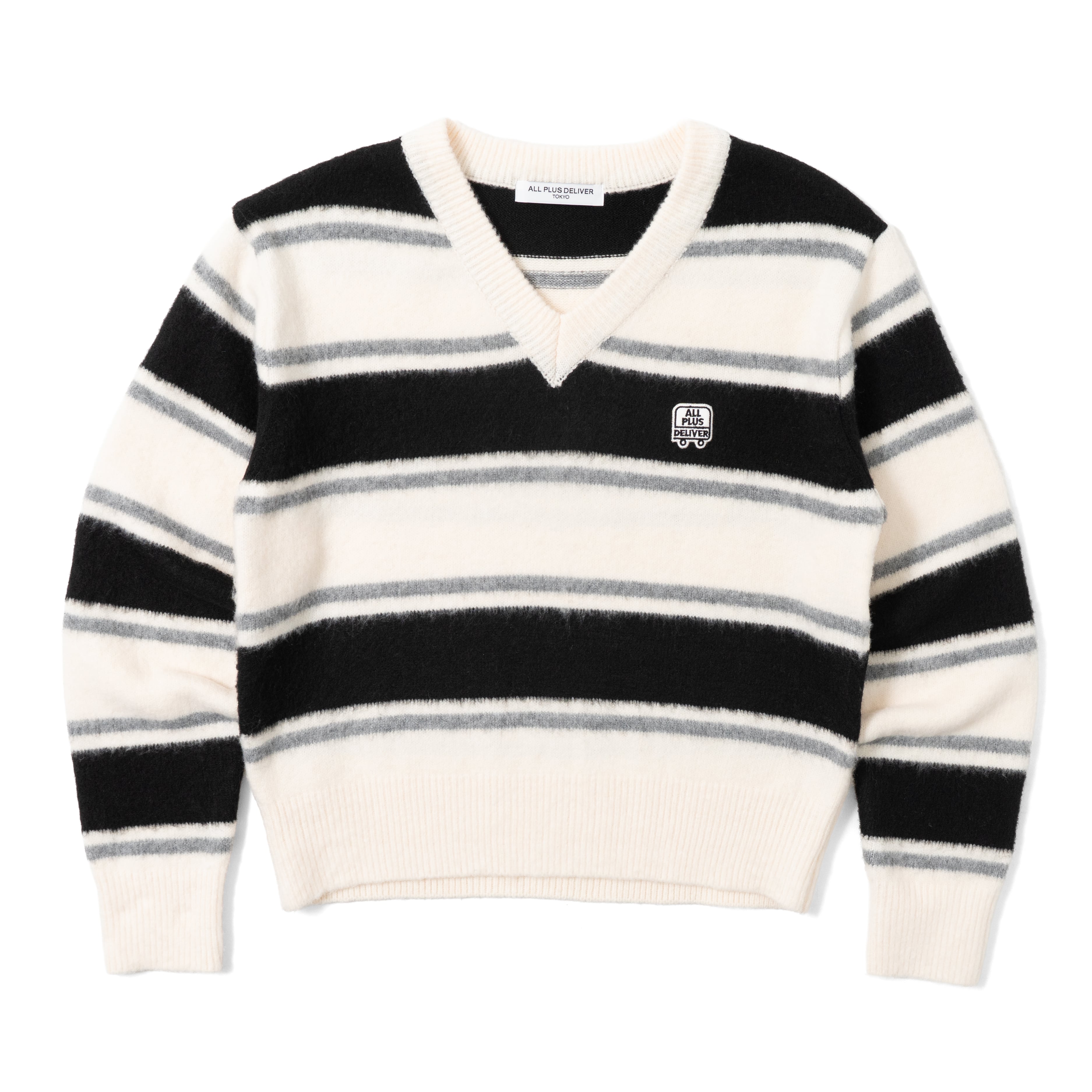 ALPSDR LOGO PATCH BORDER V-NECK KNIT / BLACK