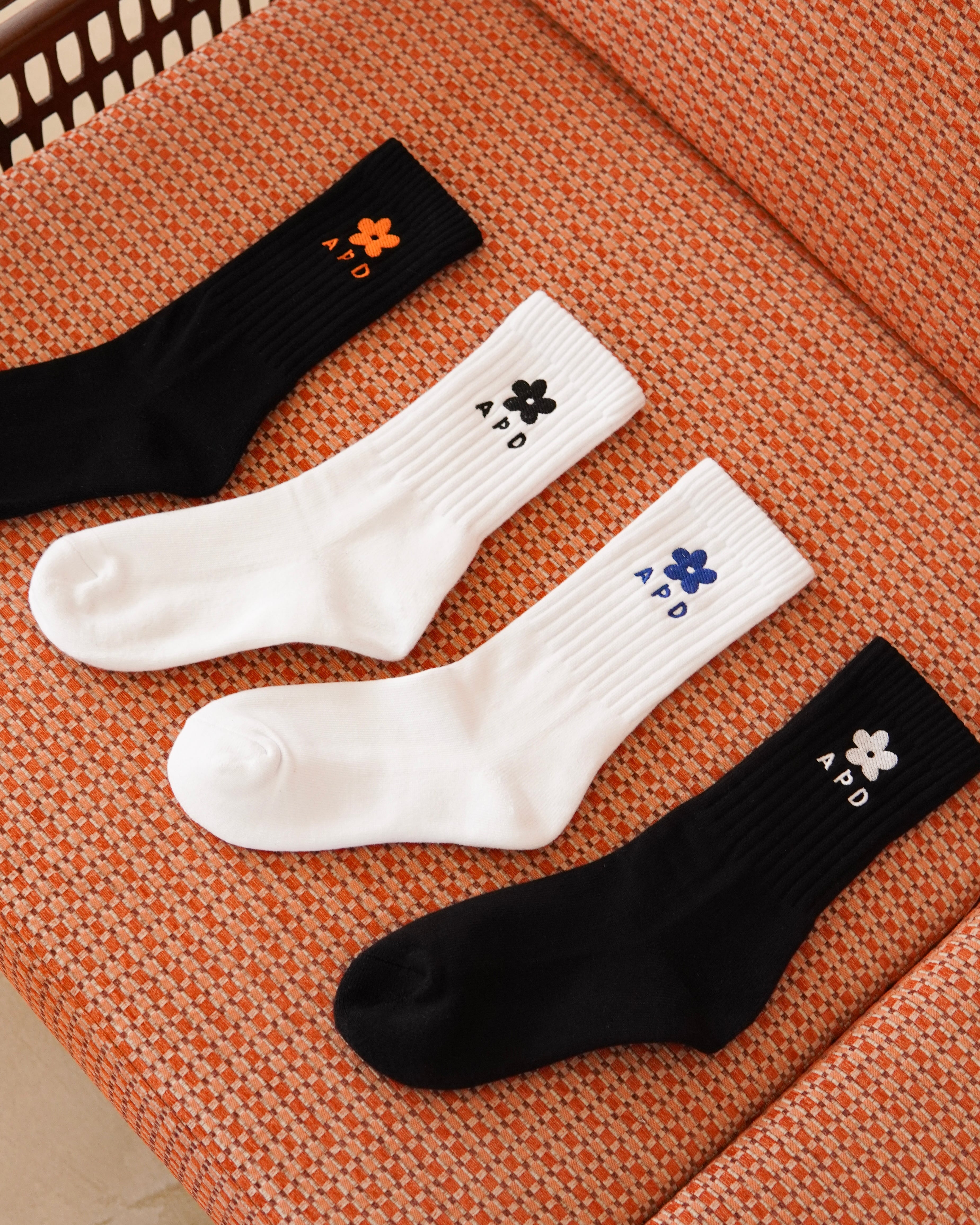 ALPSDR FLOWER LOGO SOCKS / WHITE × BLACK