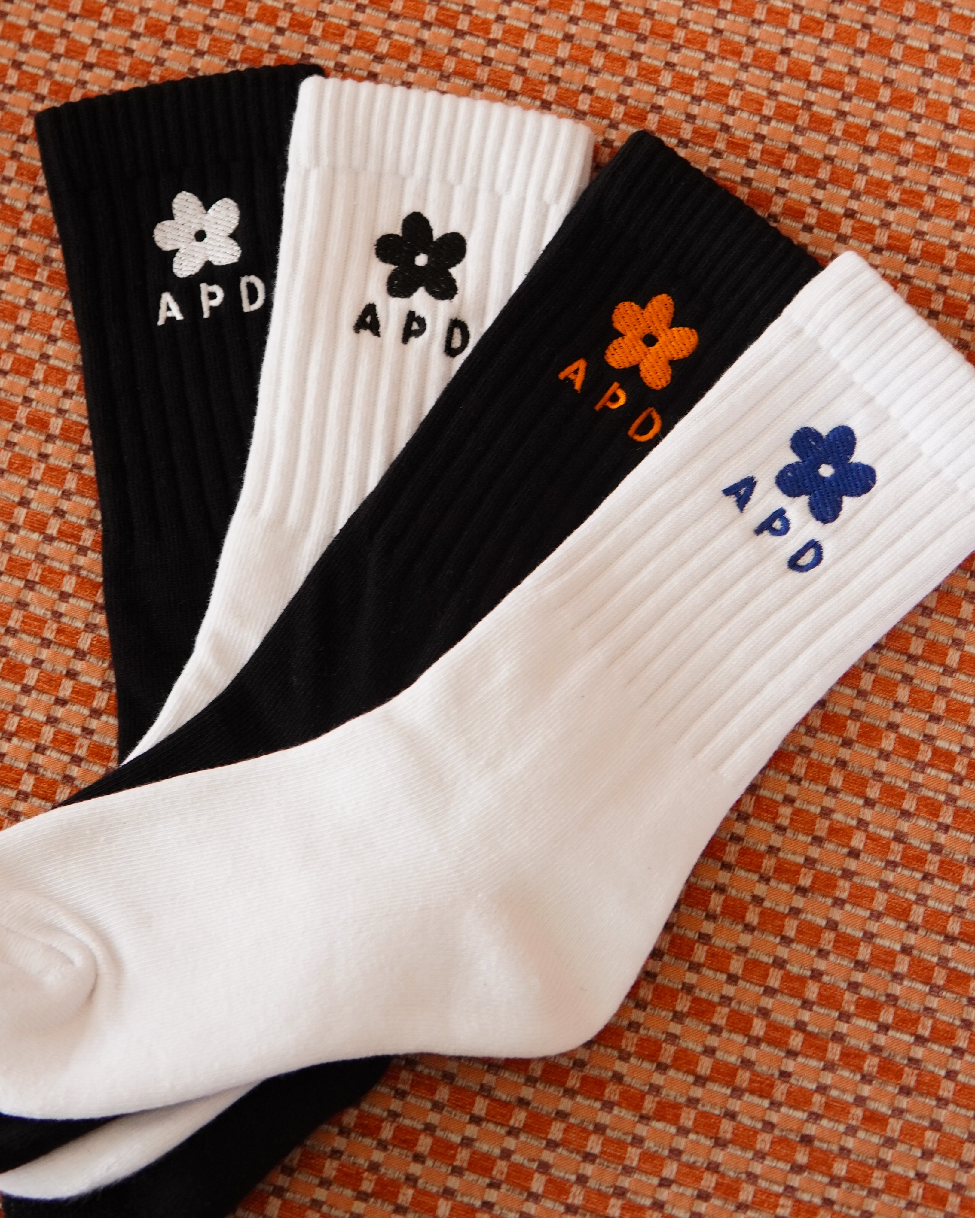 ALPSDR FLOWER LOGO SOCKS / WHITE × BLUE