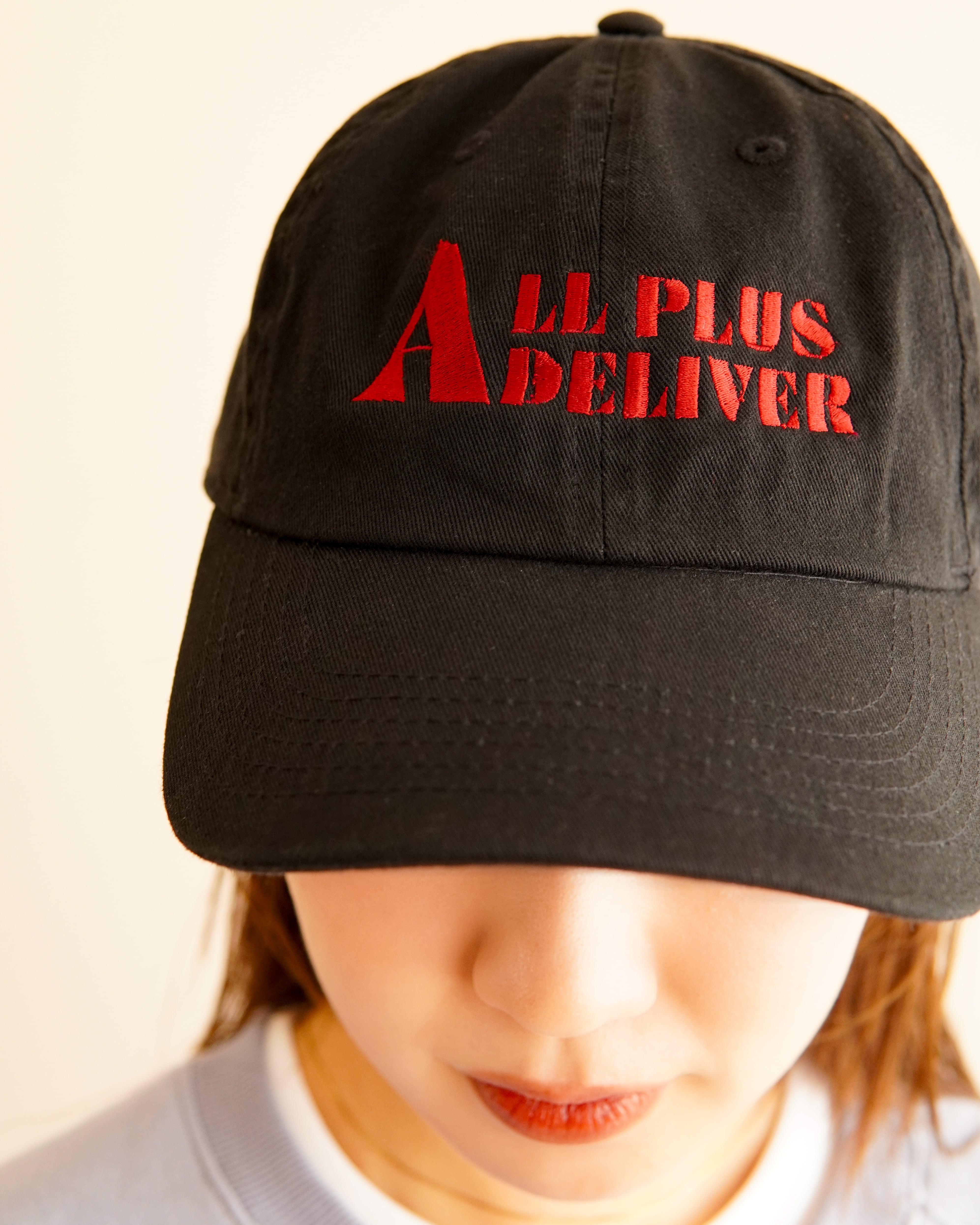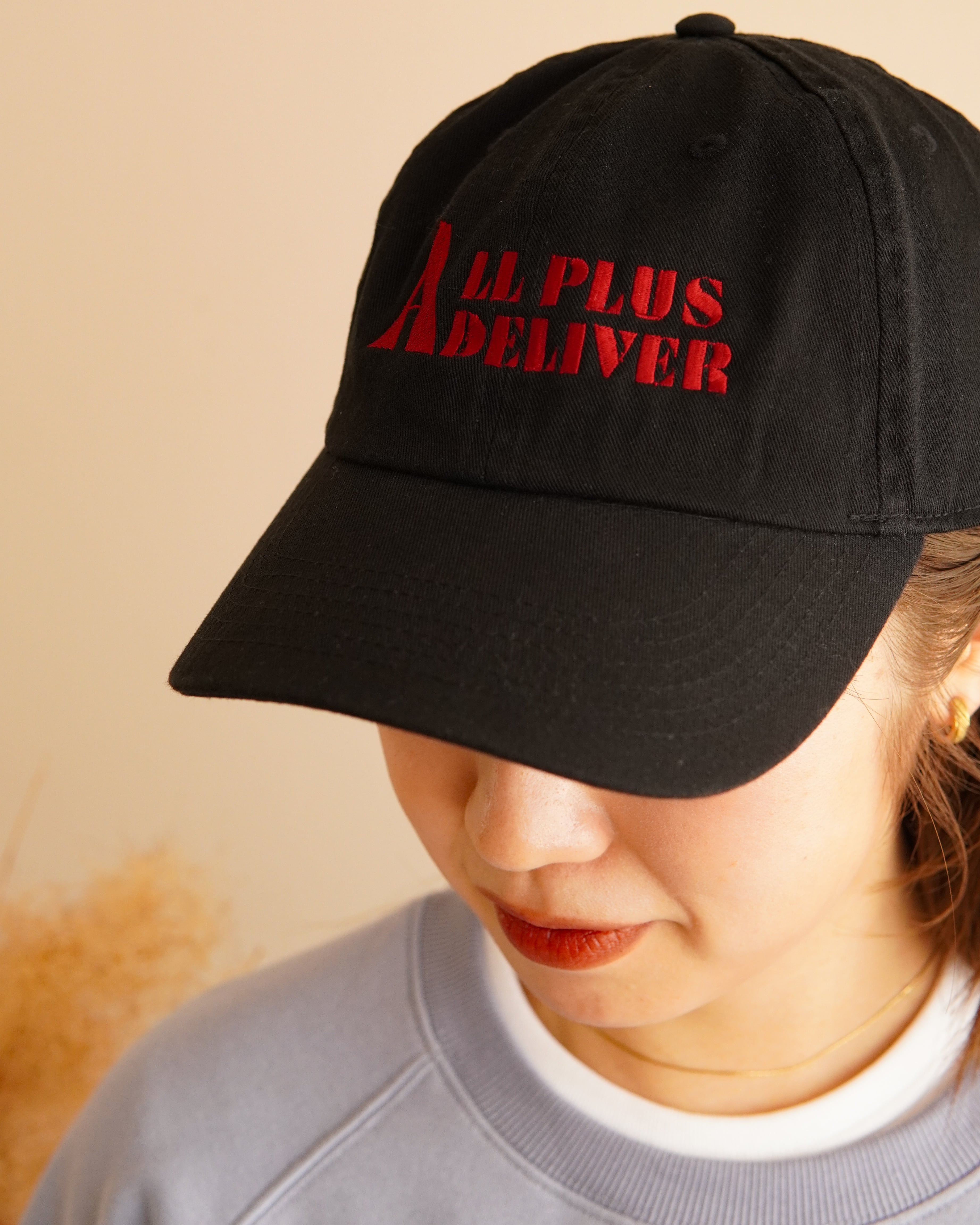 頭文字「A」を強調したデザインに、ALL PLUS DELIVERのロゴを組み合わせ、ミニマルながら印象的な仕上がりに。