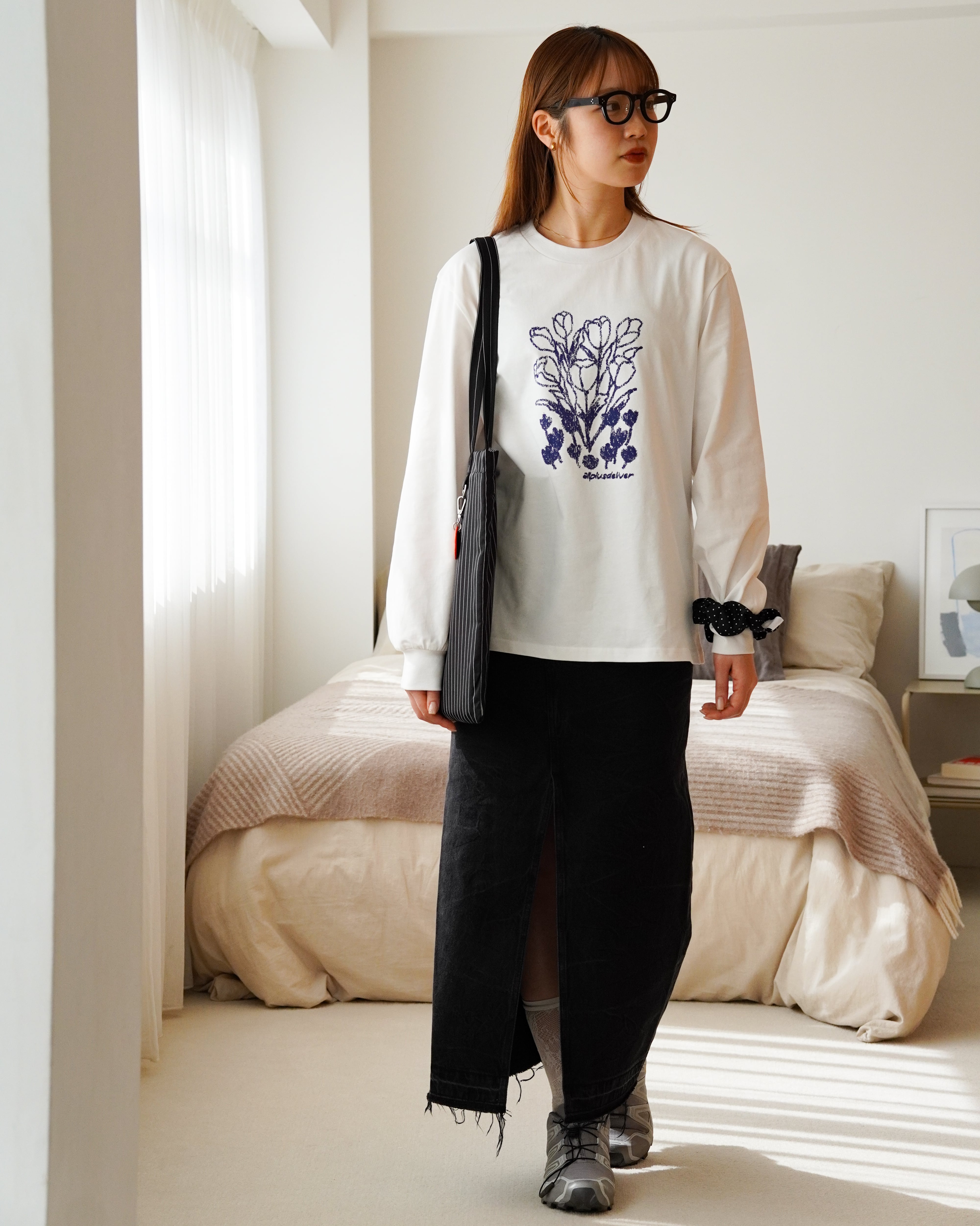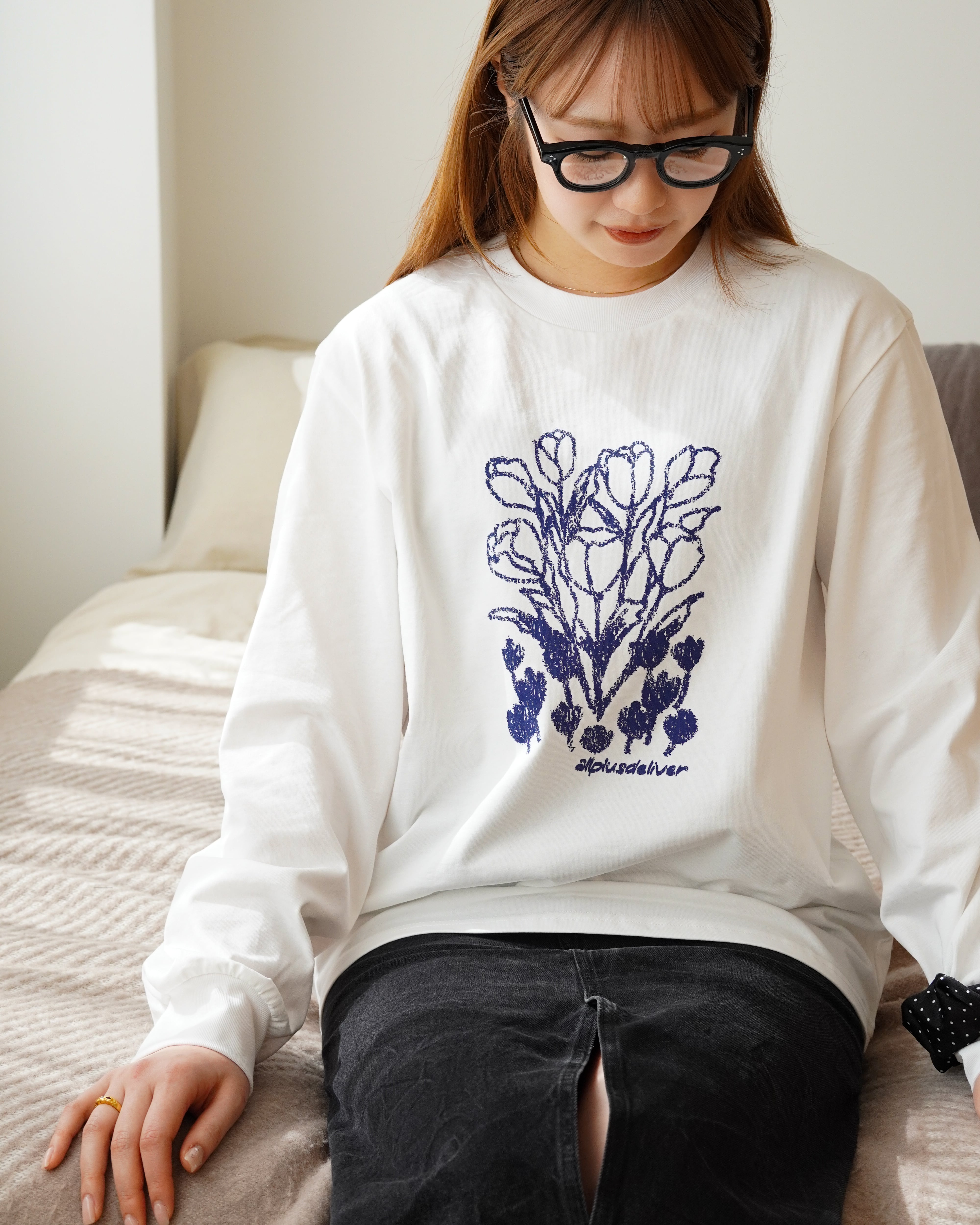 ブランドネームとチューリップをプリントで落とし込んだ長袖Tシャツ。