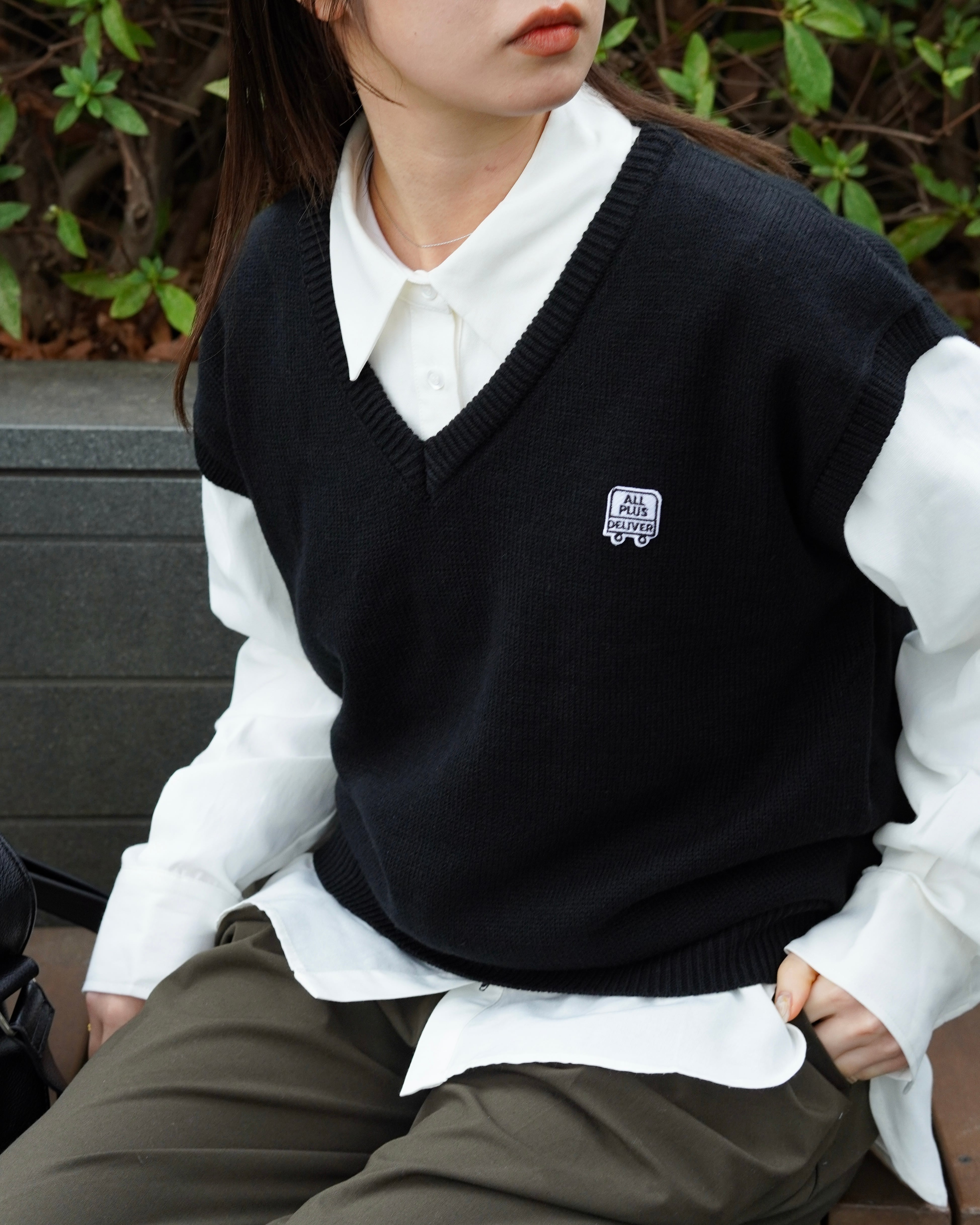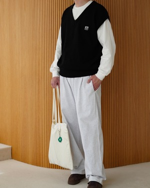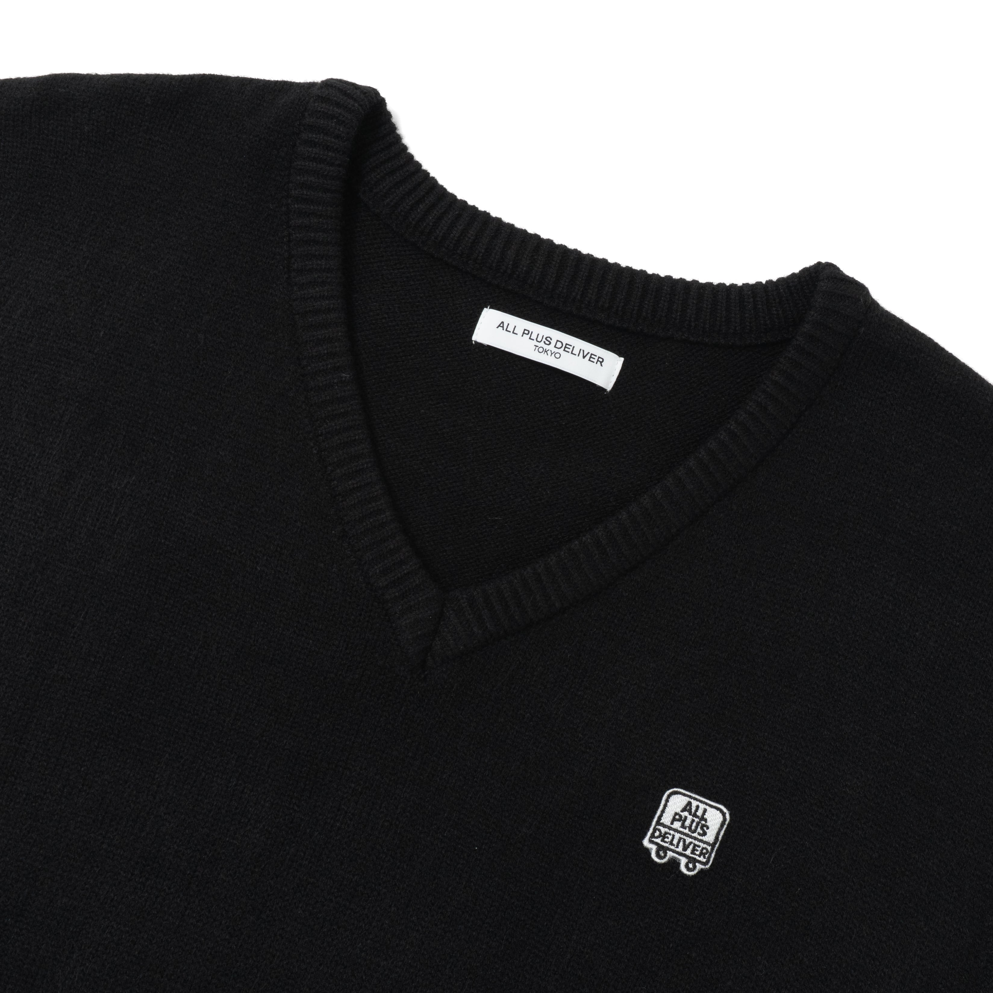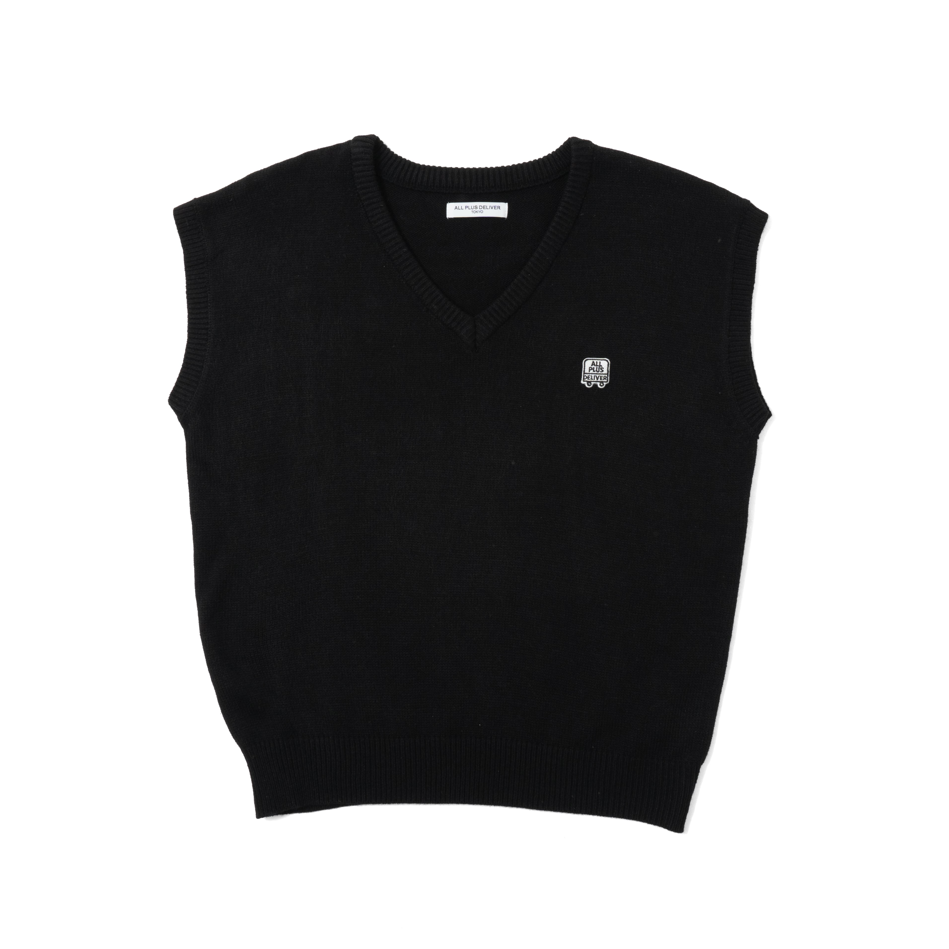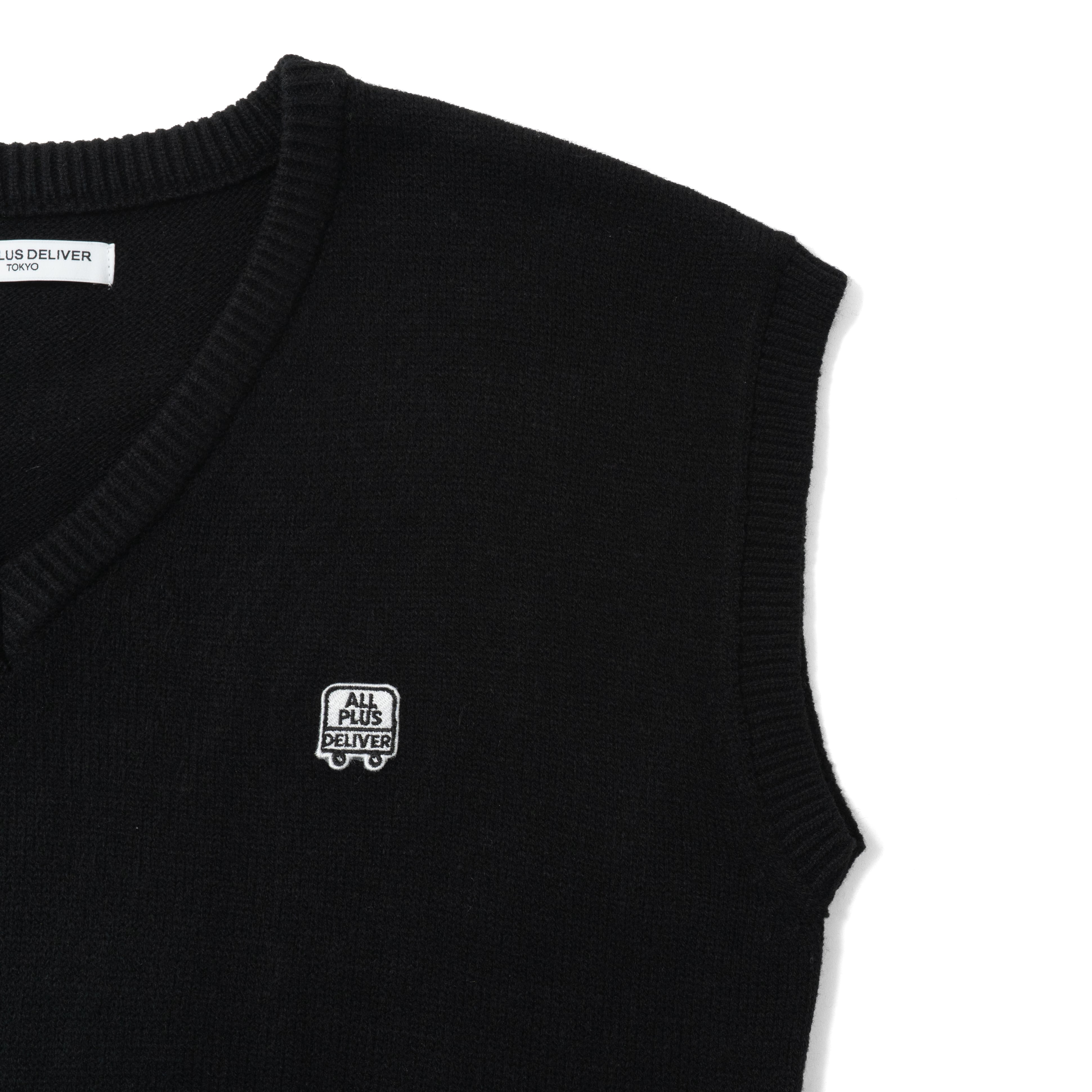 ALPSDR LOGO PATCH V-NECK KNIT VEST / BLACK