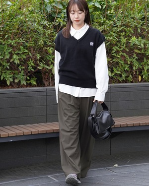 ブランドロゴをワッペンで落とし込んだ、Vネックニットベスト。