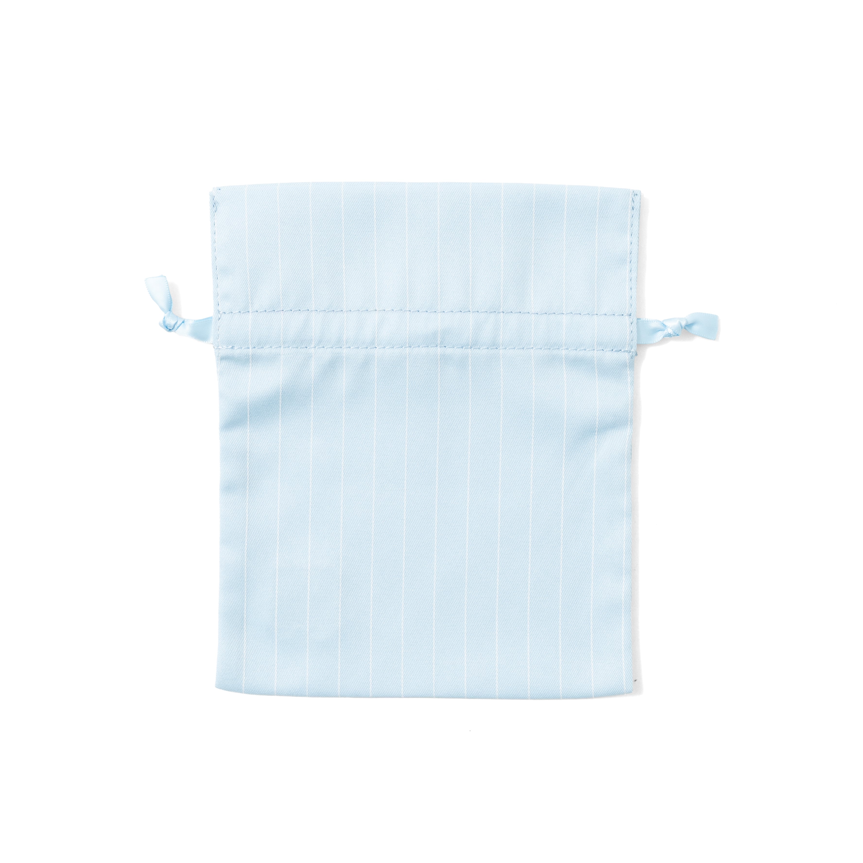 クリーンな印象のストライプ生地に、ブランドロゴをワンポイントで配置したシンプルなデザイン。