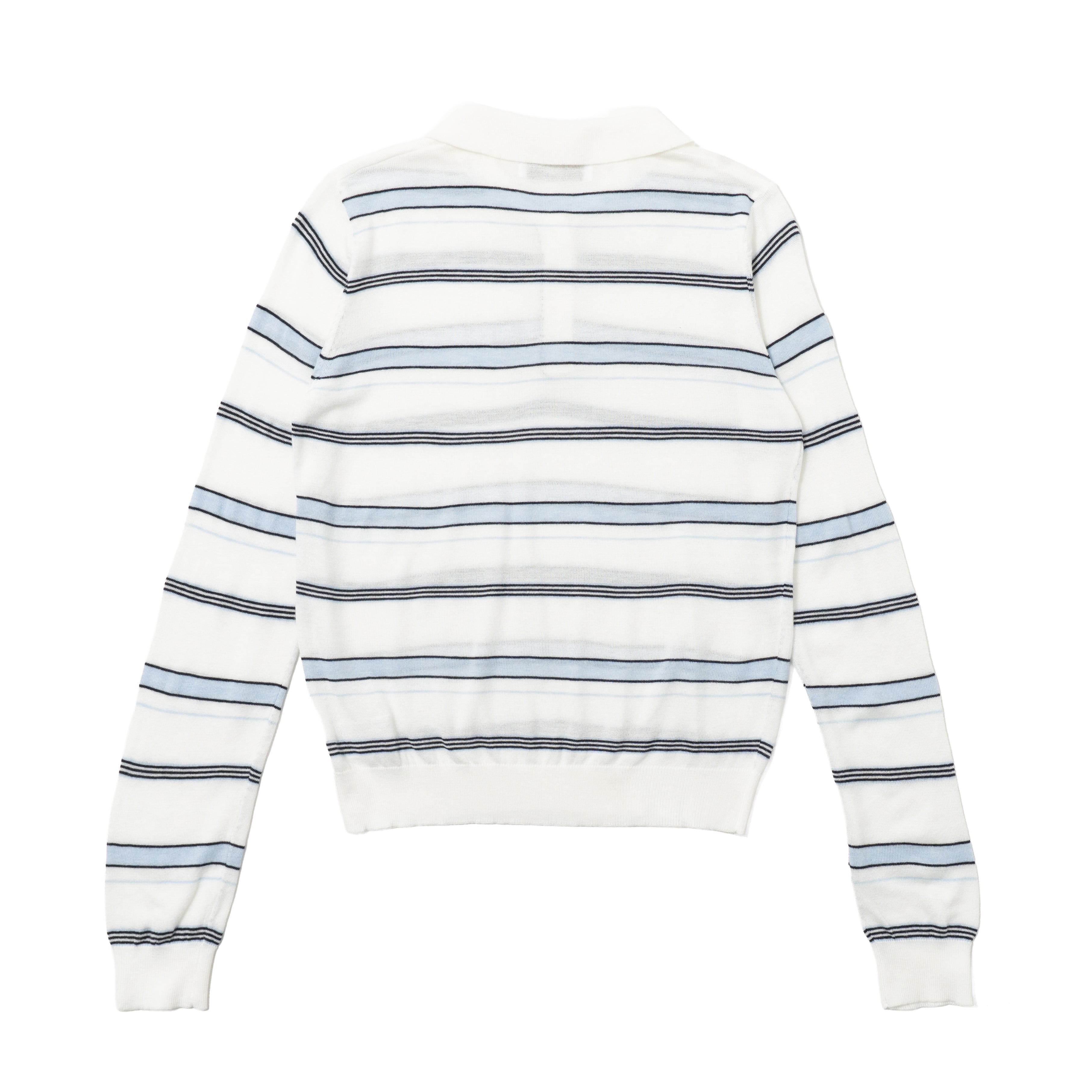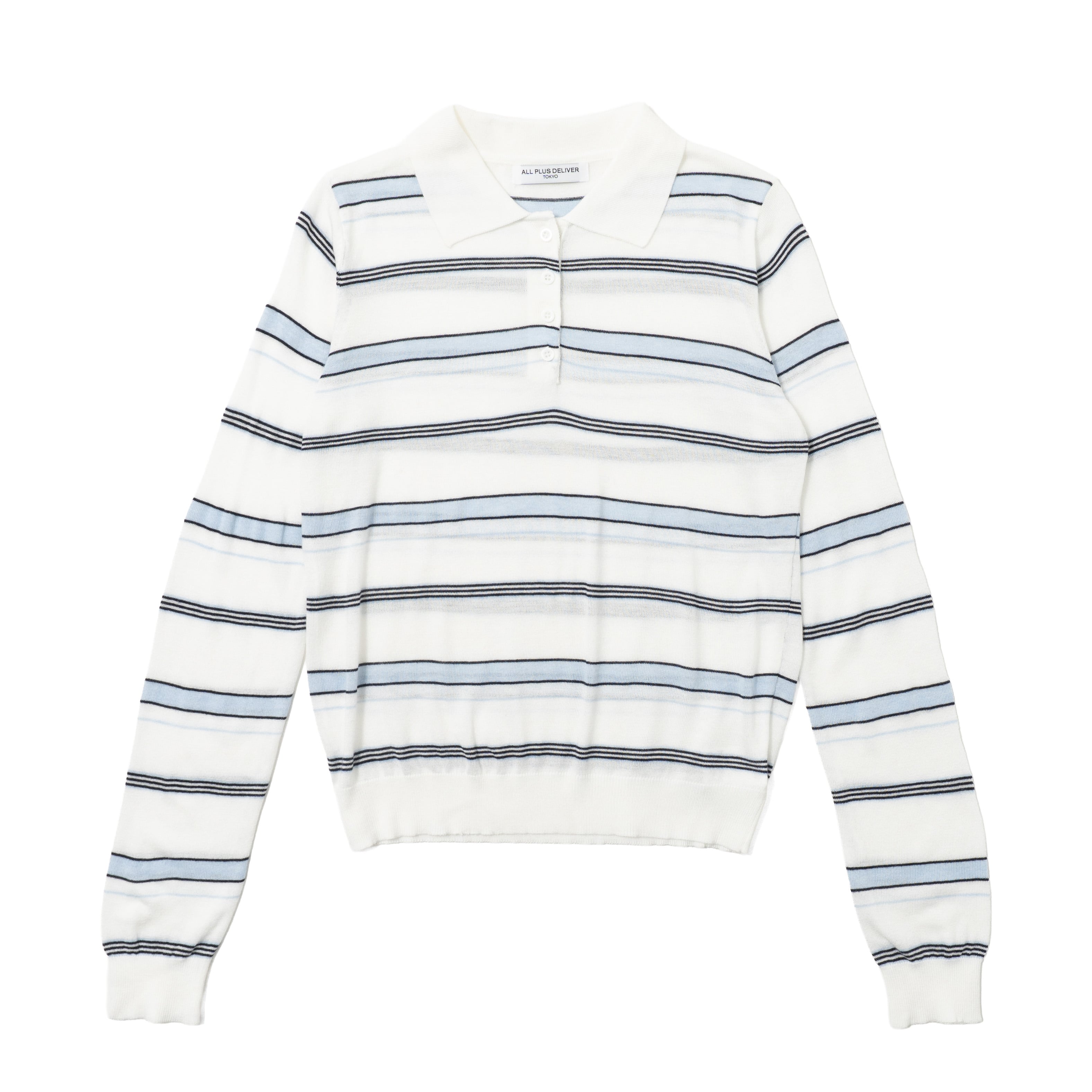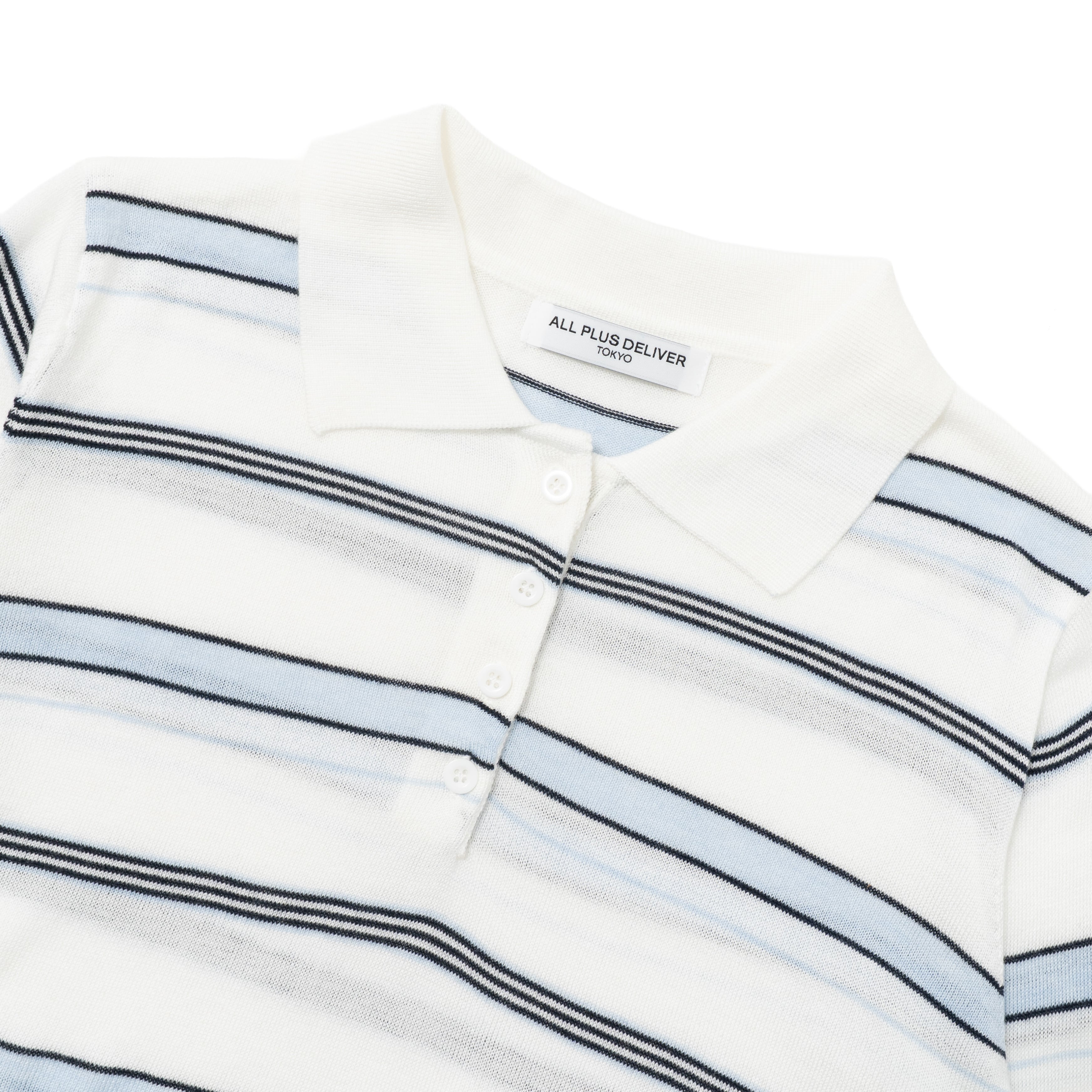 柔らかな風合いで通気性の良い薄手のニット素材を使用した、ボーダーポロトップス。