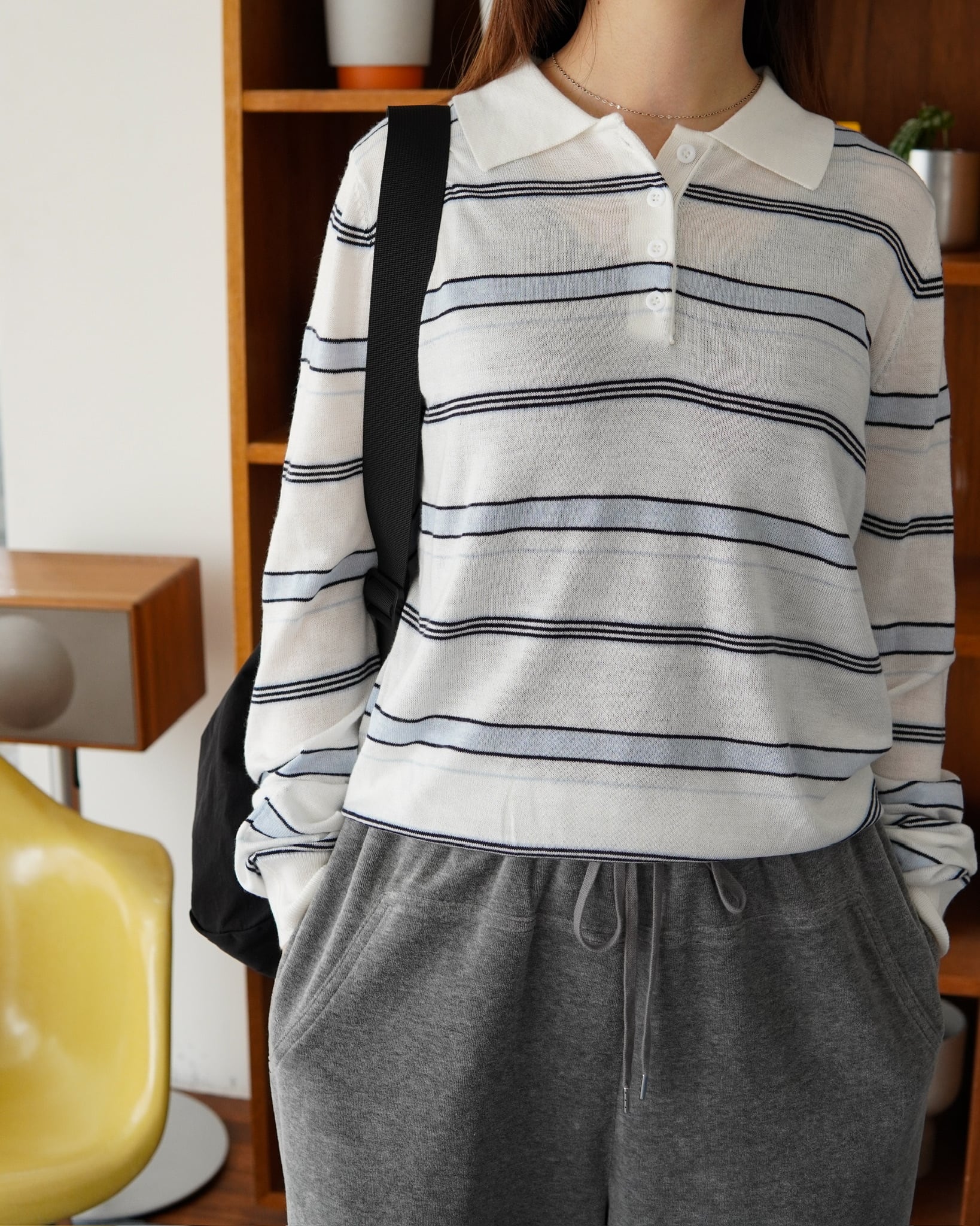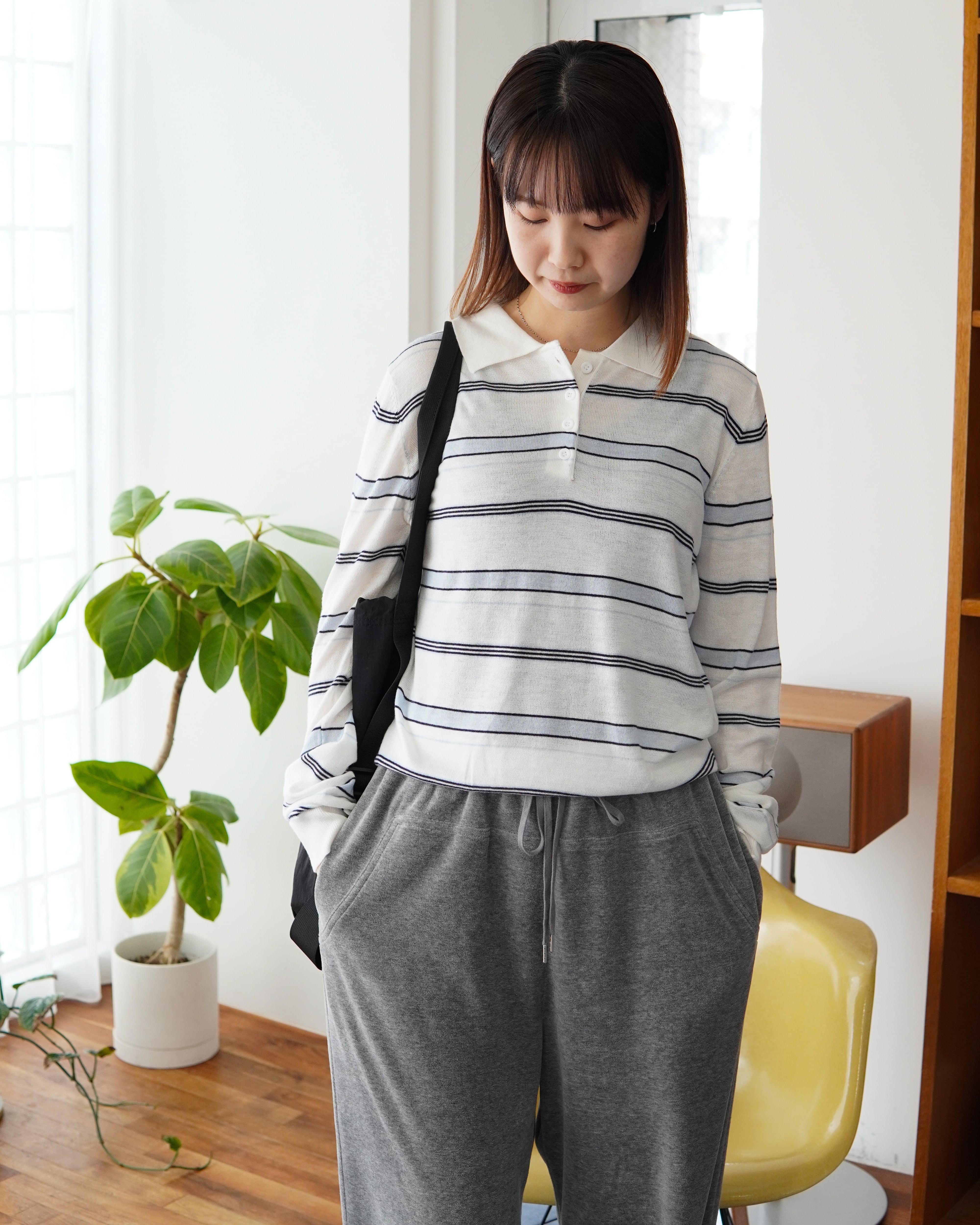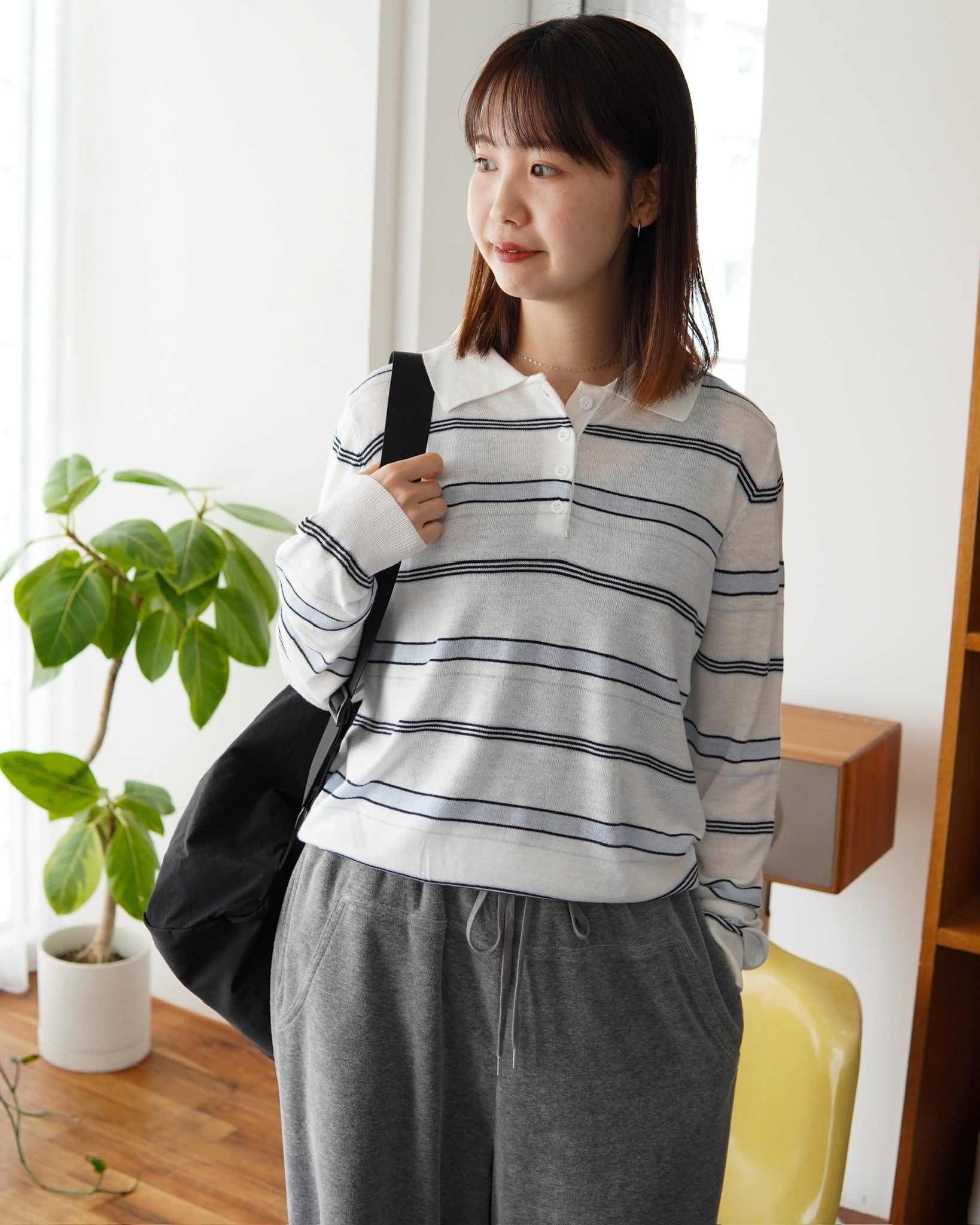 細めのボーダーと淡いカラーリングが、主張しすぎない上品なアクセントに。