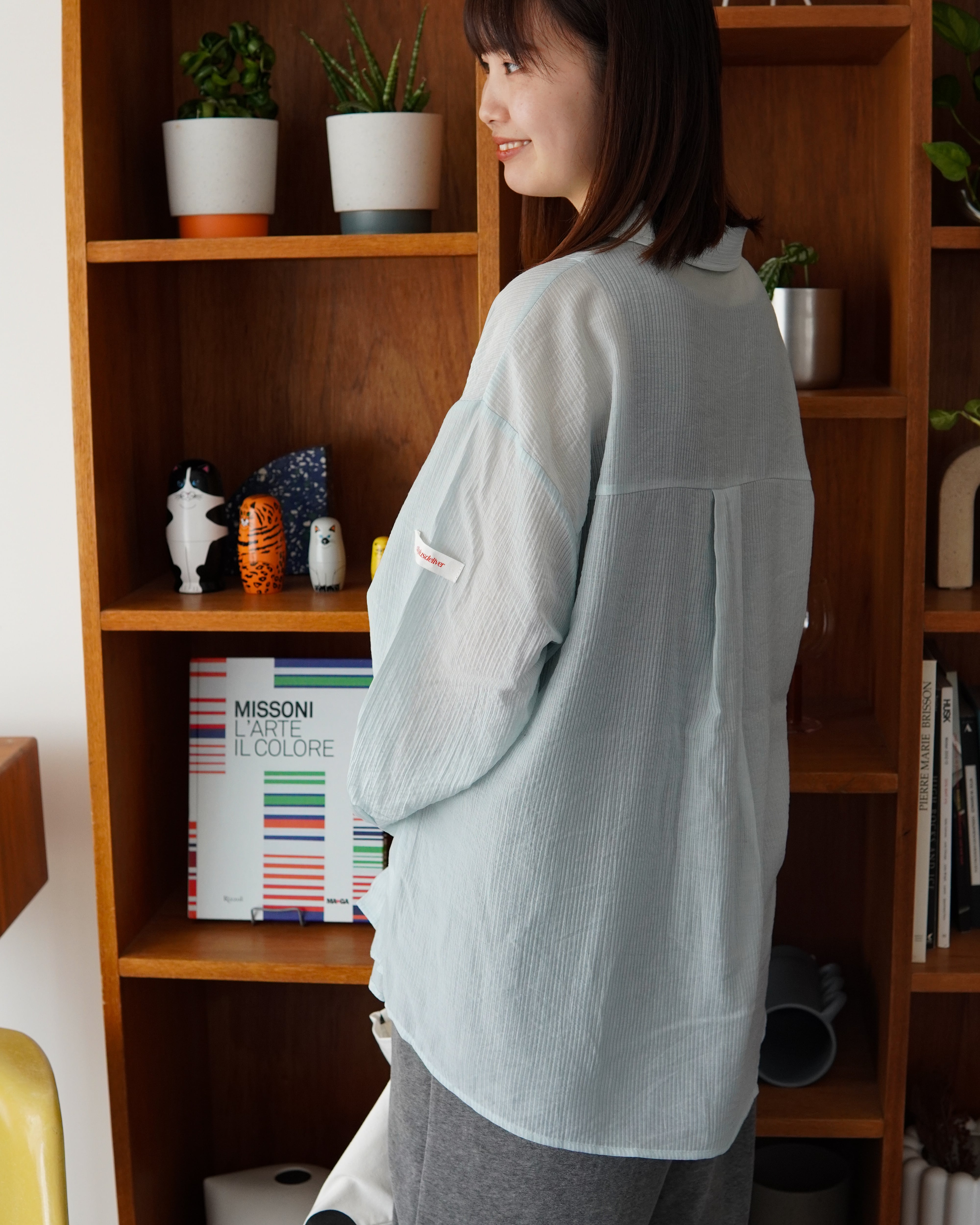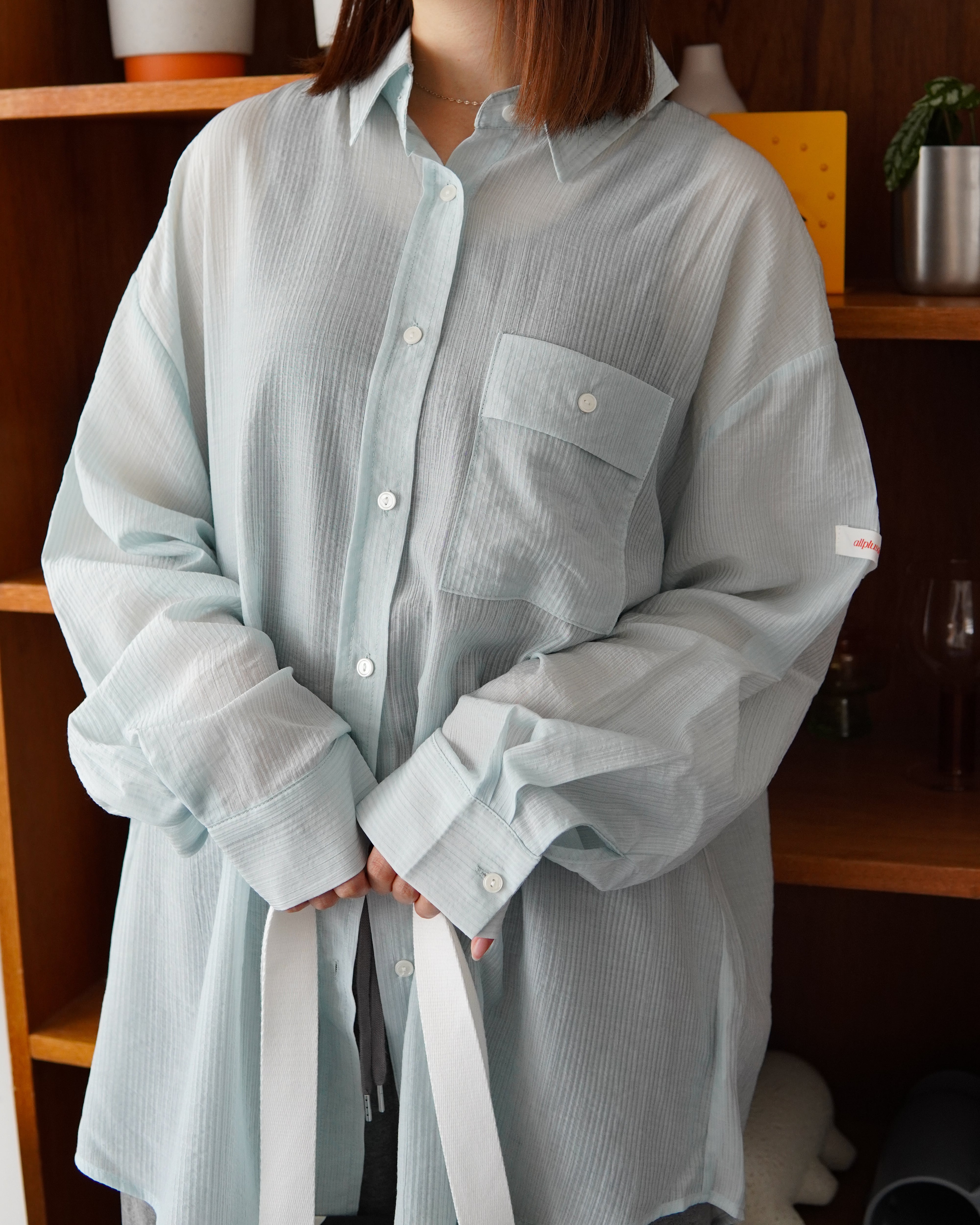 軽やかなシアー素材を使用したロングスリーブシャツ。