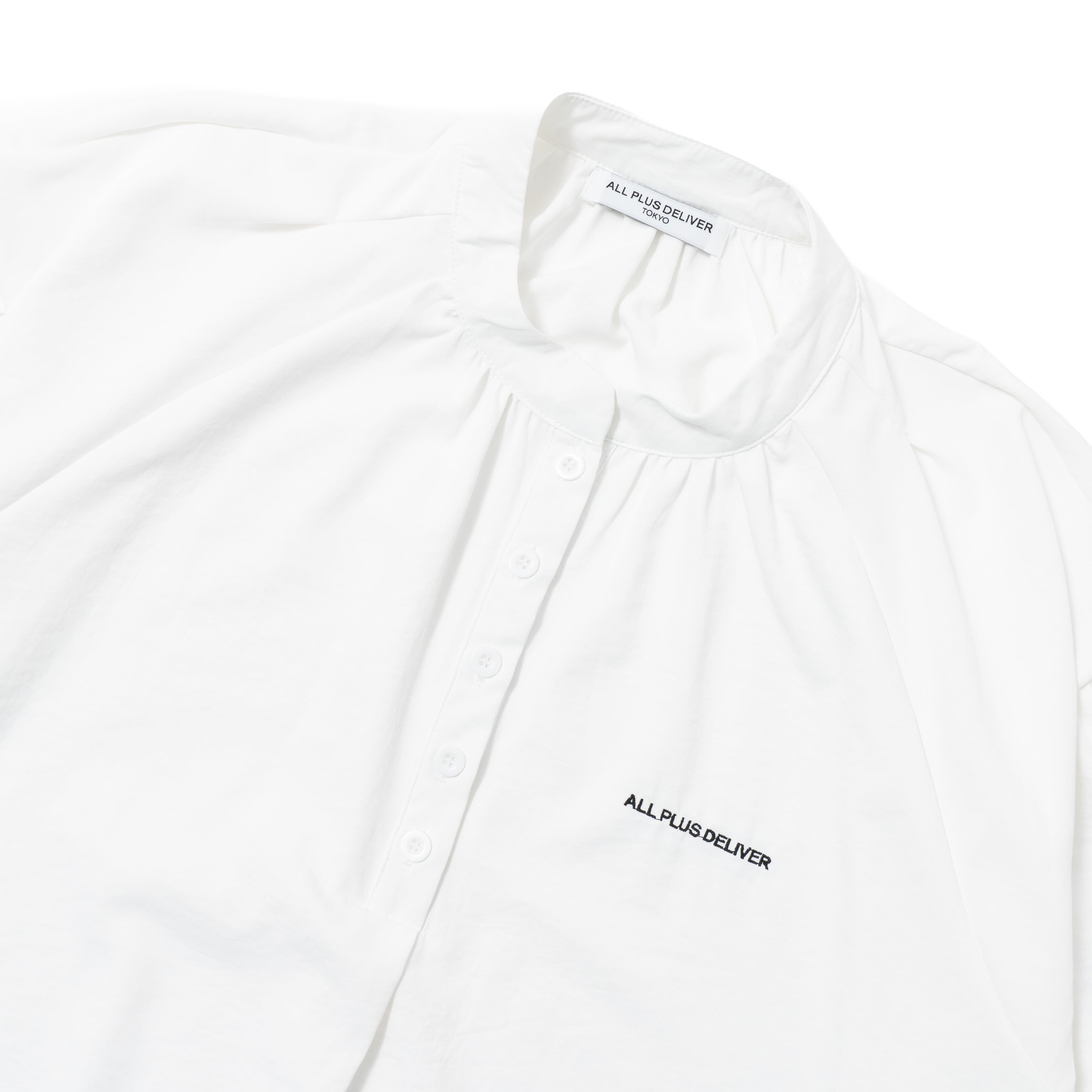 胸元にボタンを配し、程よくカジュアルな印象に。
