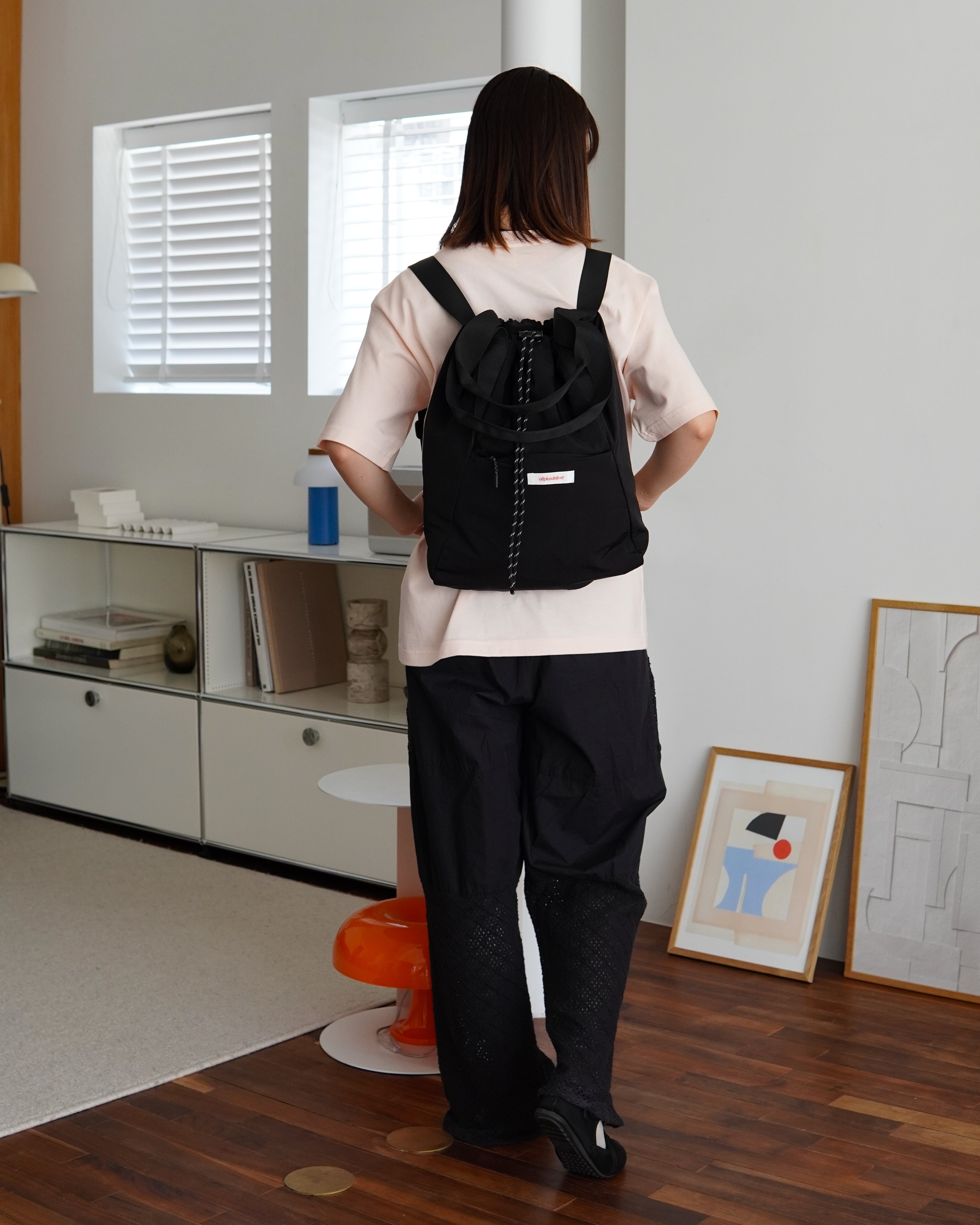 ドローコード仕様の開口部により、スムーズな開閉が可能。