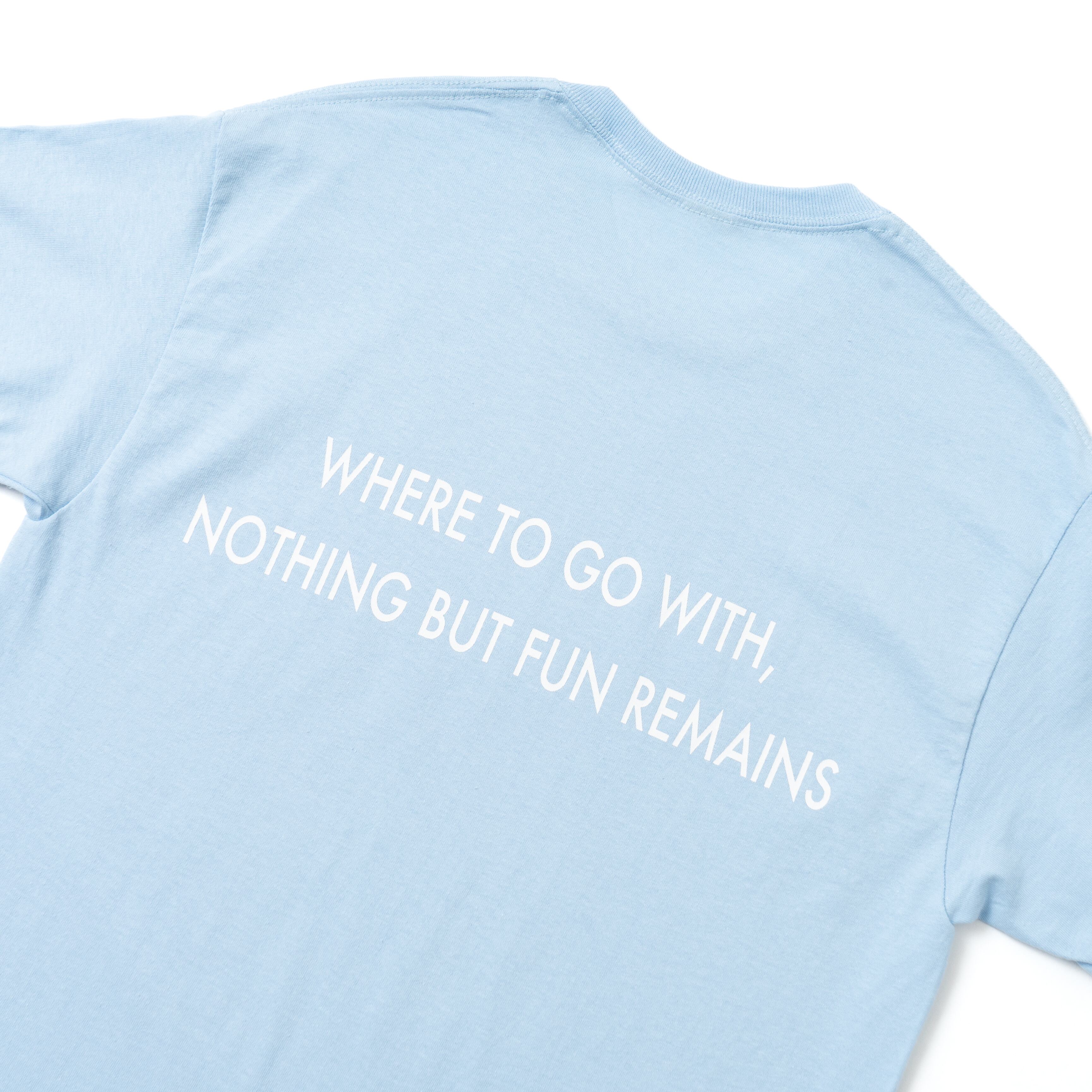 後面には今回のテーマでもある「WHERE TO GO WITH, NOTHING BUT FUN REMAINS」をプリントで落とし込んだTシャツ。