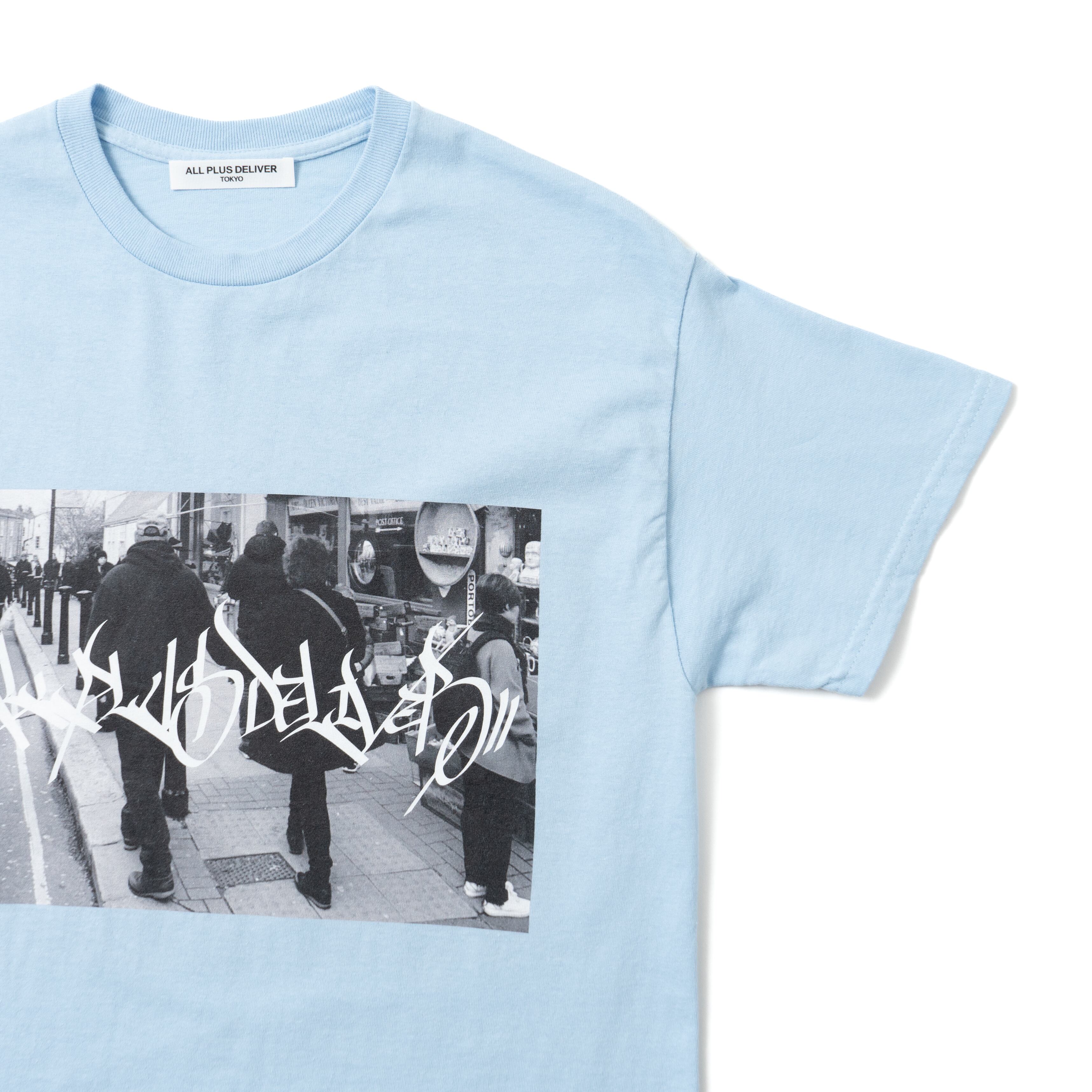前面にはモノクロ写真の上からブランドネームをタギングロゴで落とし込み、