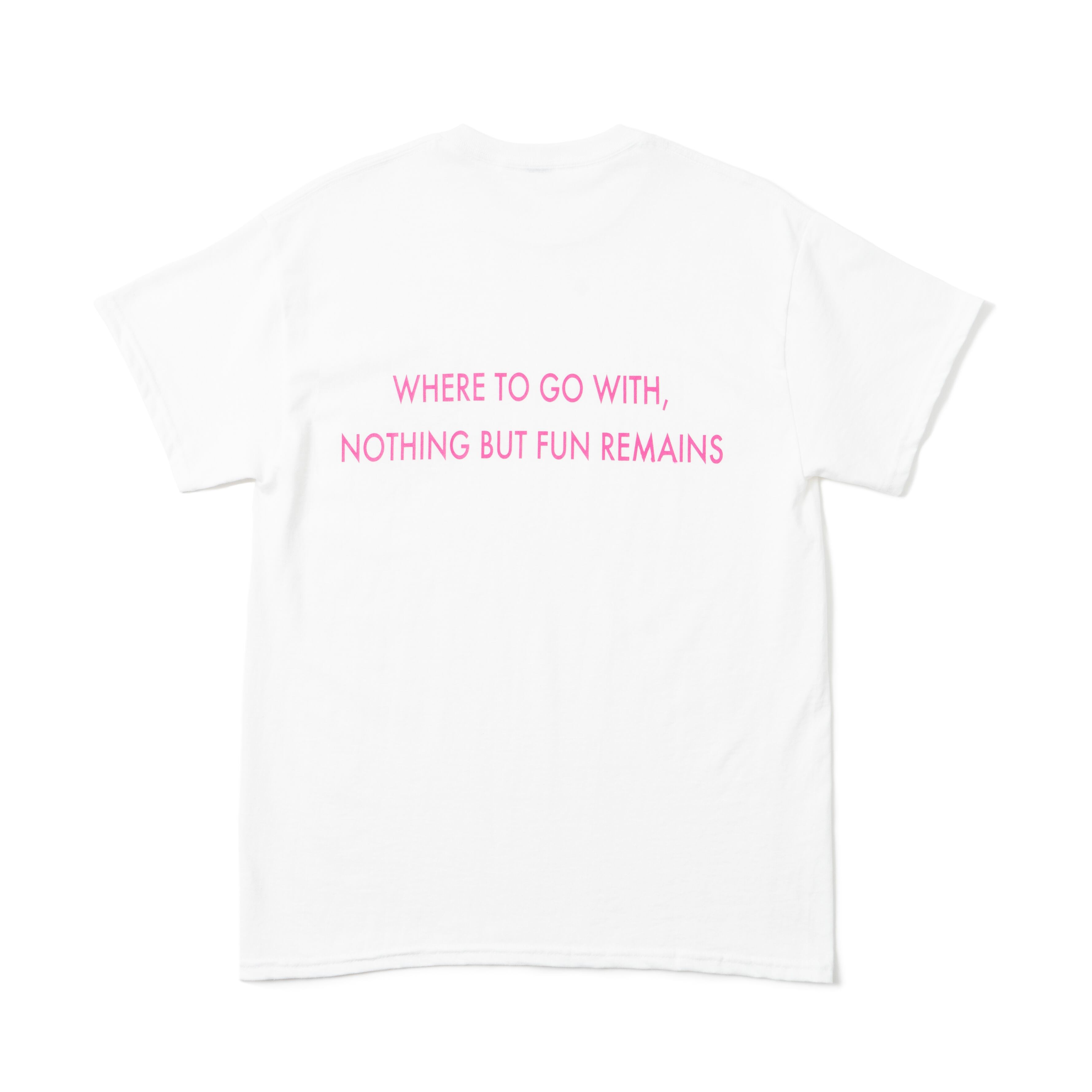 後面には今回のテーマでもある「WHERE TO GO WITH, NOTHING BUT FUN REMAINS」をプリントで落とし込んだTシャツ。