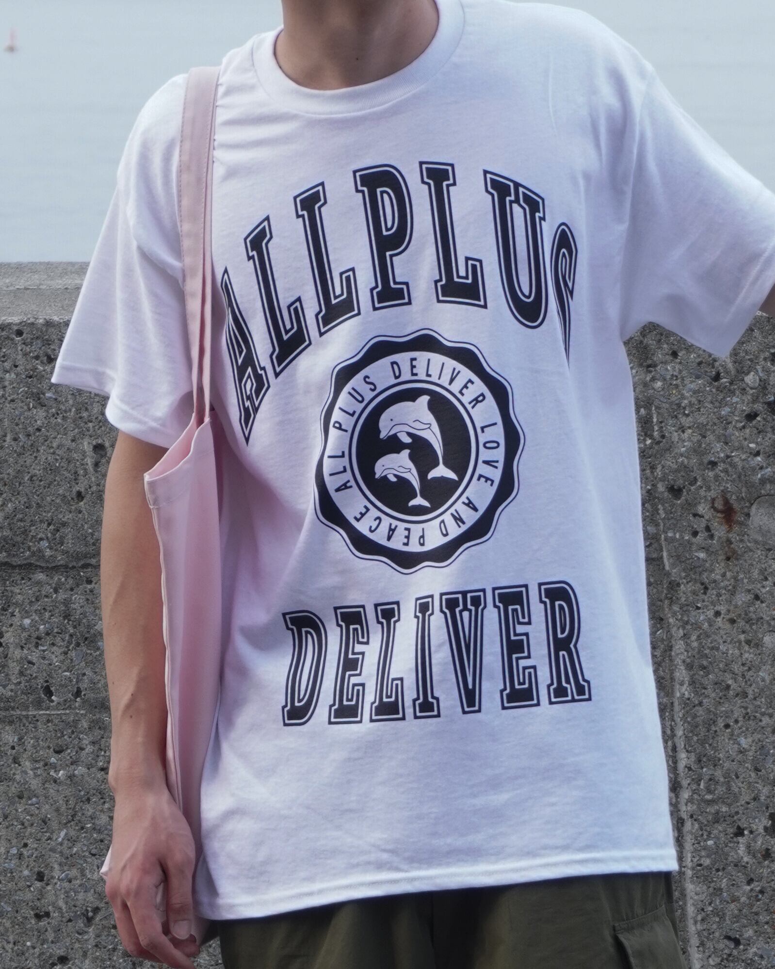 イルカを中心にカレッジロゴのグラフィックをプリントで落とし込んだTシャツです。一枚でコーディネートのアクセントになること間違いなし。
