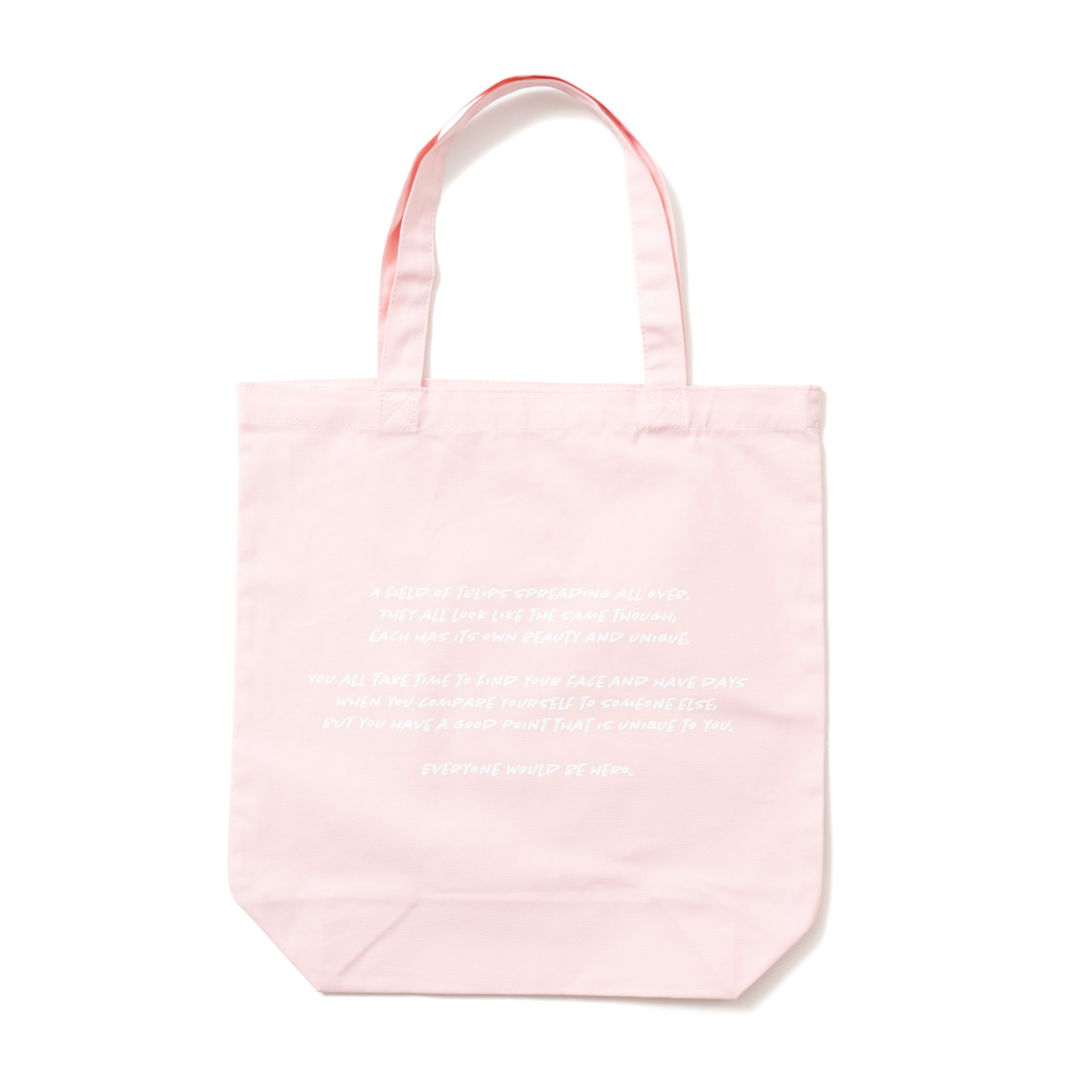 前面に一輪のリューリップを、後面に一輪のチューリップに込めた想いをプリントで落とし込んだトートバック。従来のトートバックよりもサイズを小さめに製作いたしました。