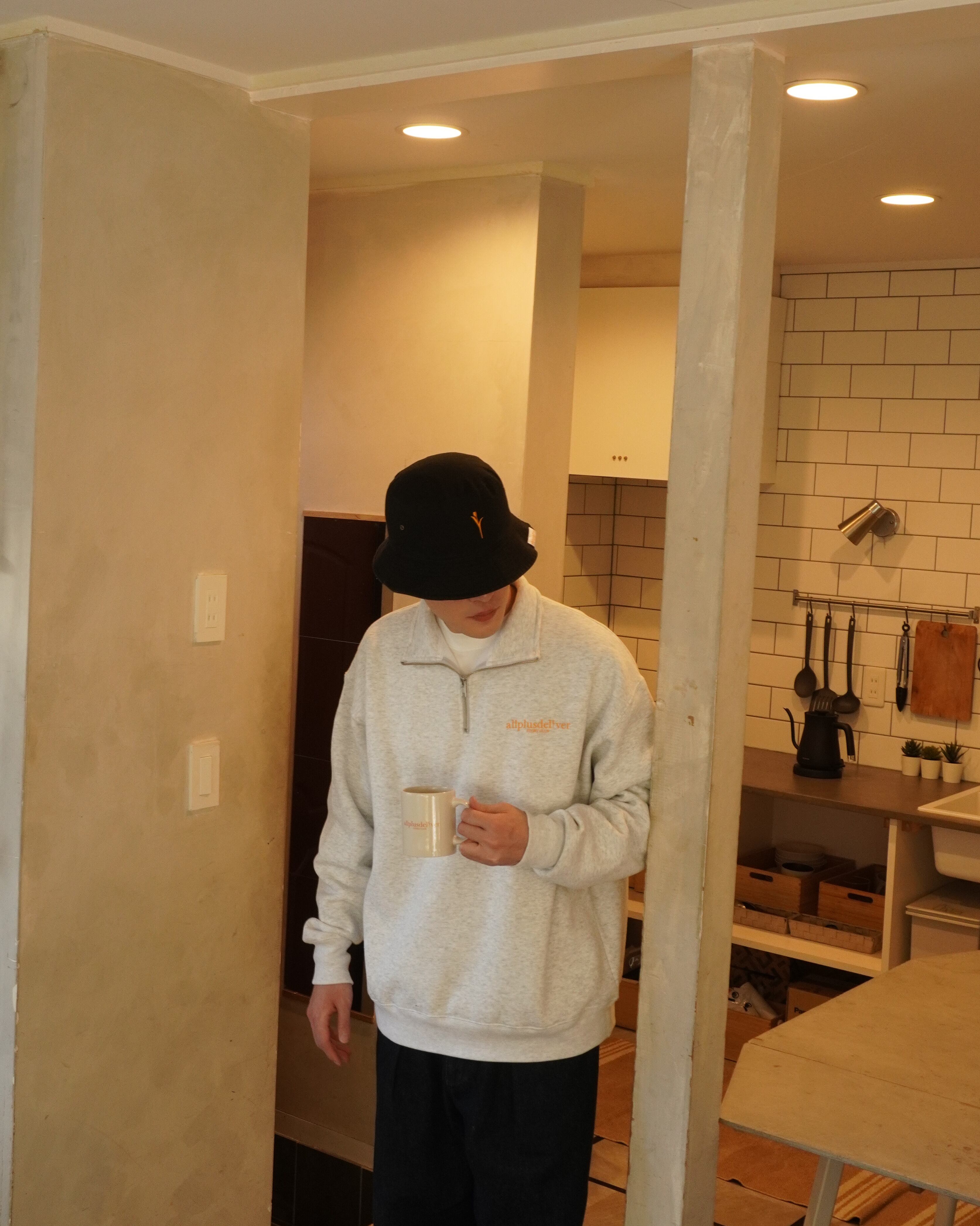 ブランドネームをプリントで落とし込んだハーフジップスウェット。シンプルなデザインのため着回しが抜群のアイテムです。肉厚な生地と裏起毛の暖かさが特徴です。
