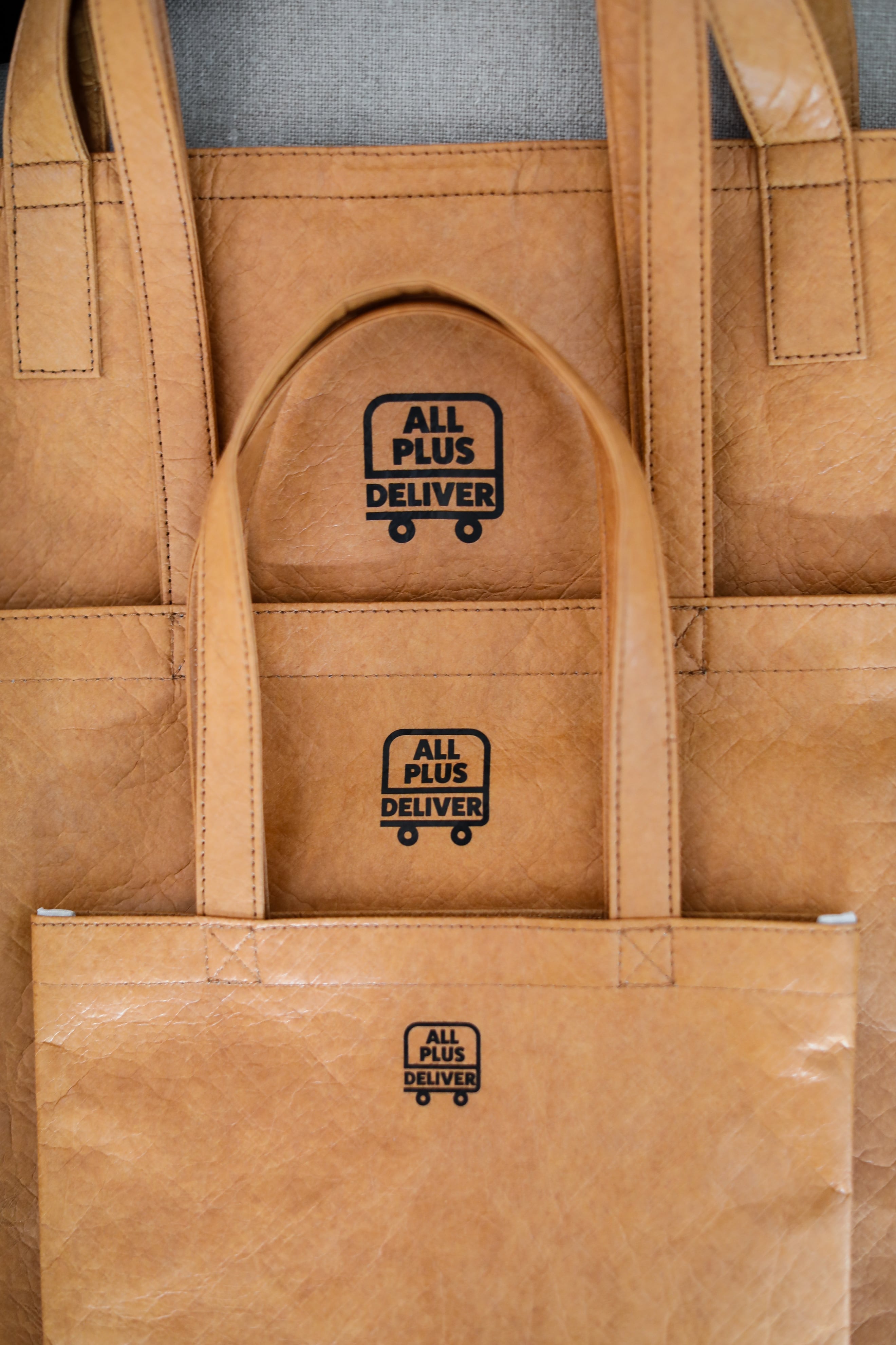 ブランドロゴをプリントで落とし込んだタイベックトートバッグです。