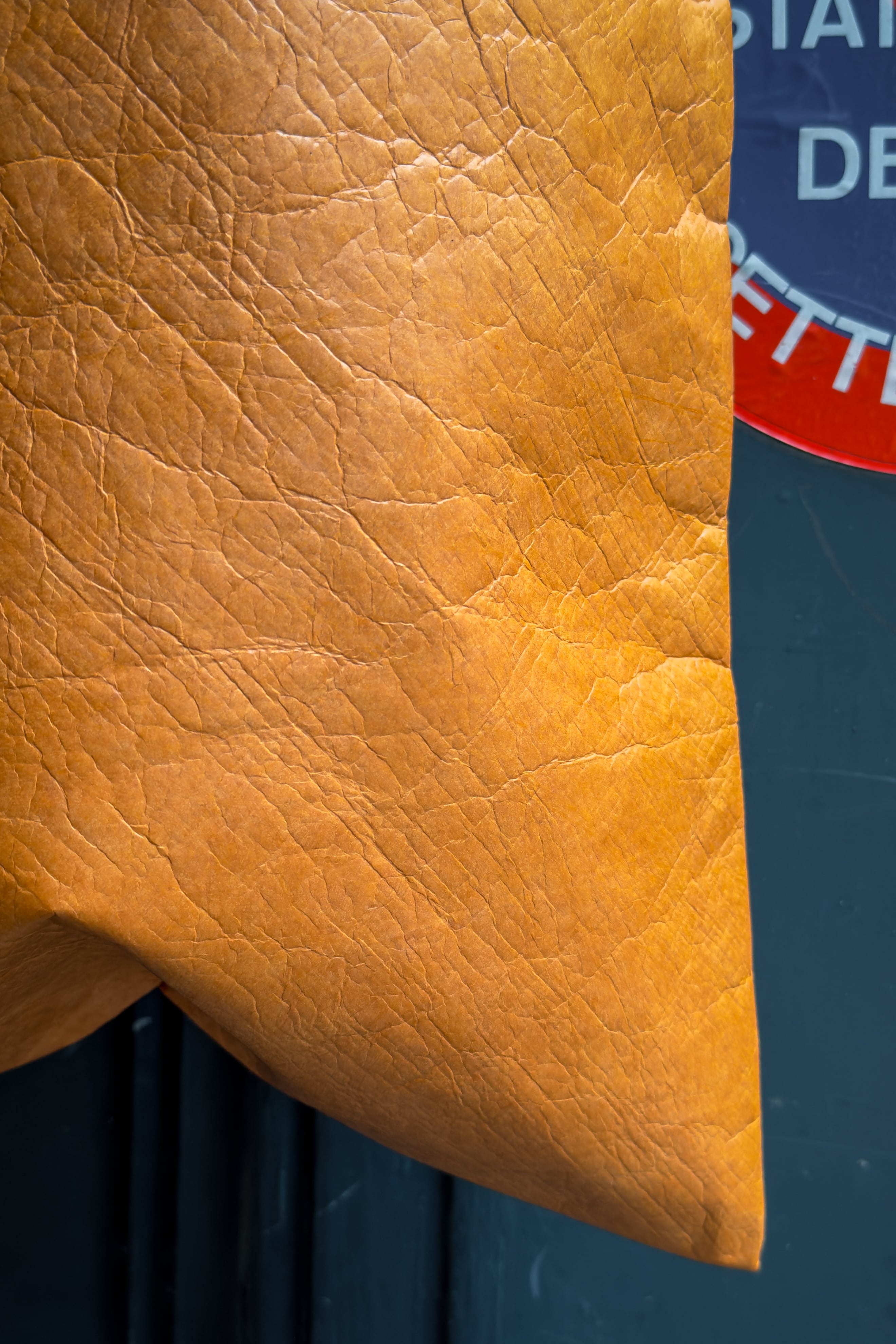 軽量で水を通さず、摩擦にも強い丈夫な素材です。軽量ですが丈夫な性質のため、ガシガシ使っていただいても問題ありません。ペーパーライクで独特なシワ感や素材感をお楽しみいただけます。